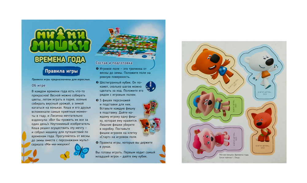 Настольная игра "Ми-ми-мишки: Времена года" – это классическая бродилка, в которую легко сможет играть вся семья. В компании любимых персонажей вы пройдёте по четырём временам года и узнаете, кто является самым удачливым!