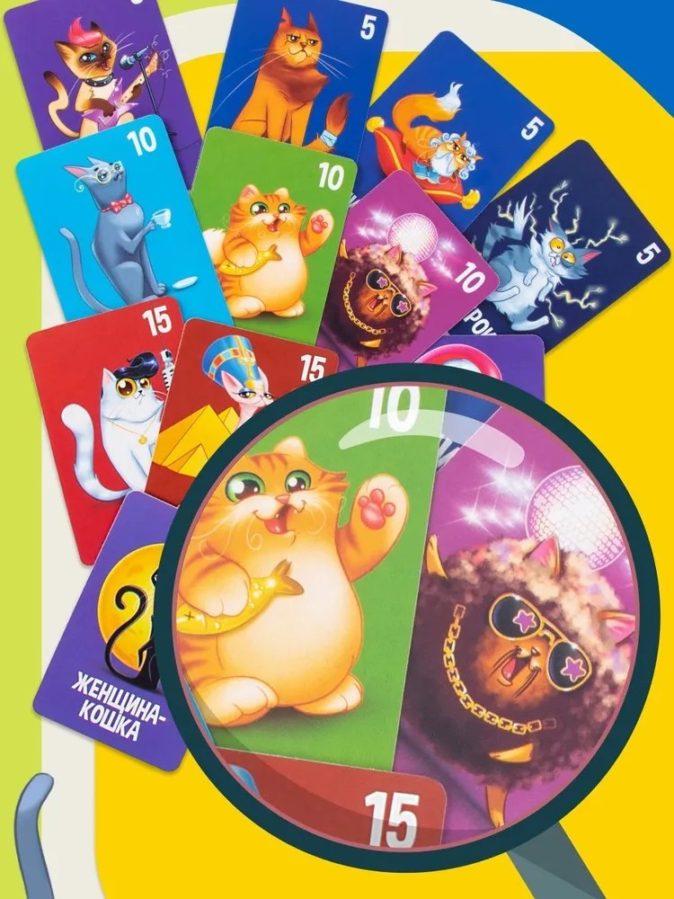 Воспользуйтесь карточкой со специальным лакомством, которое с легкостью сможет похитить пробужденного кота другого игрока. Но и тот не останется в стороне, игрок, кота которого намереваются похитить, может сыграть карточку переноски и защитить его.