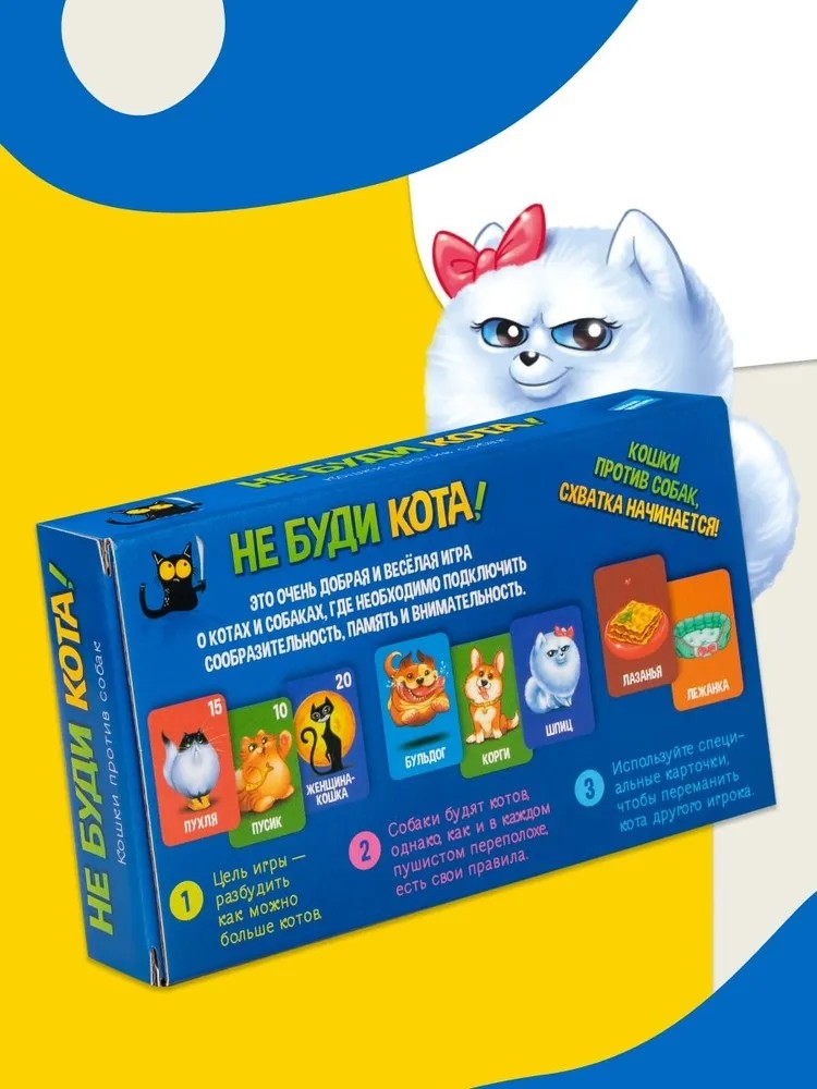 Цель игры – это разбудить больше всех котов. Для того, чтобы разбудить кота и заполучить карточку с ним, нужно воспользоваться карточкой с собакой. Однако, как и в каждом пушистом переполохе, есть свои условия.