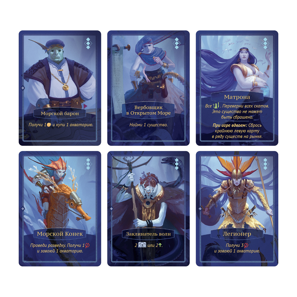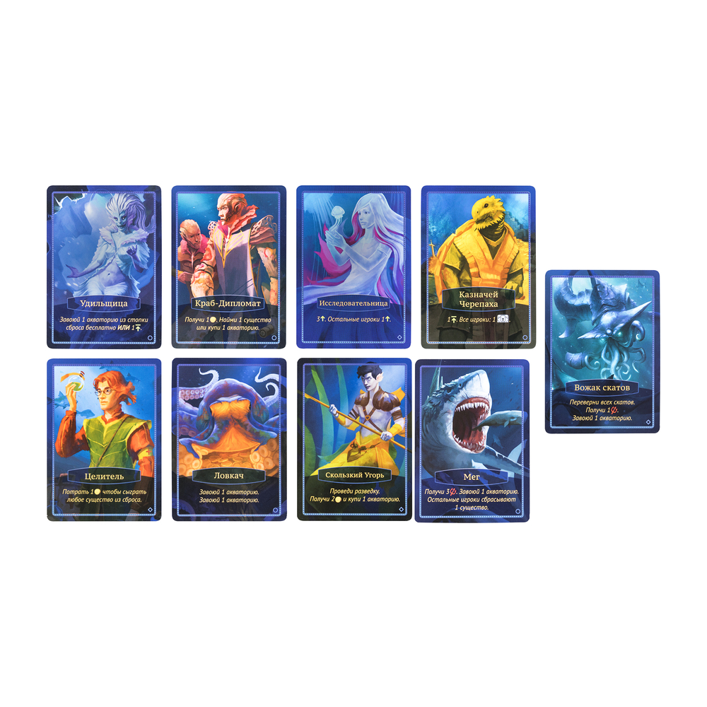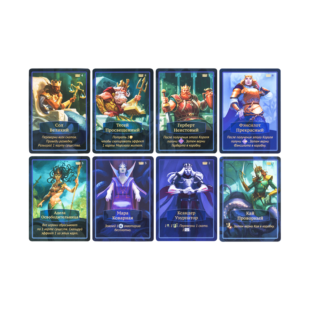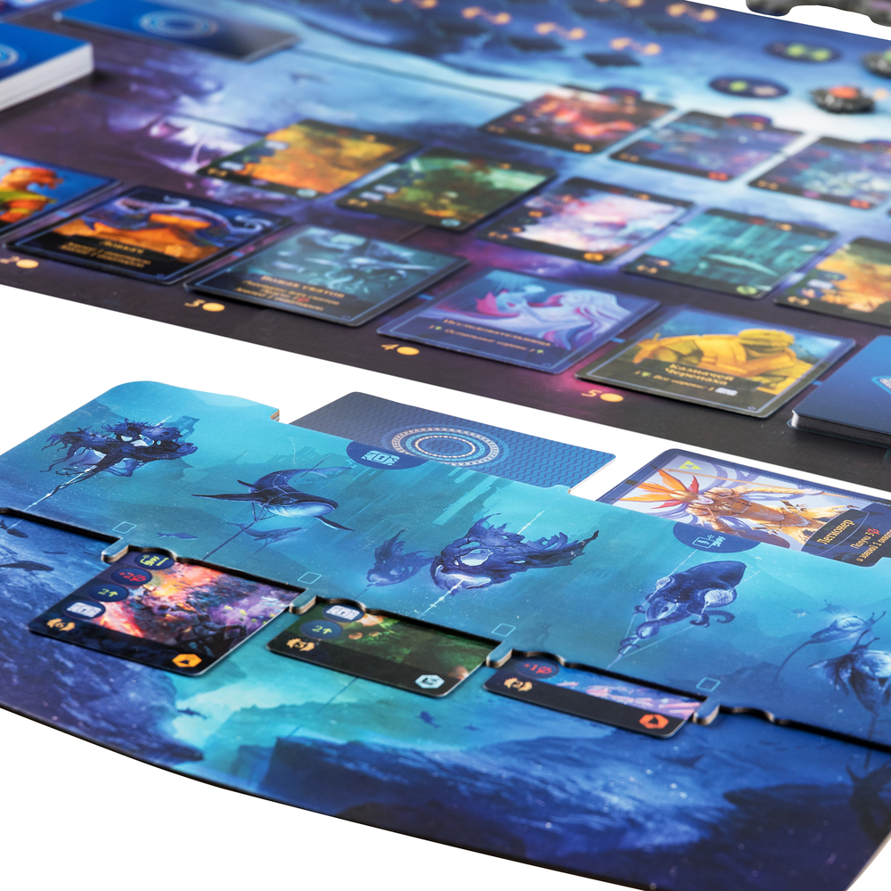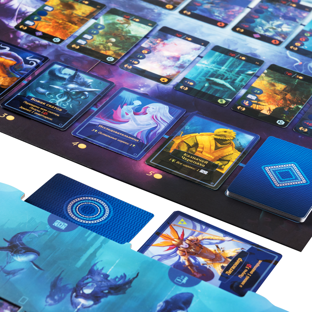 В процессе игры вы будете пополнять свою колоду, встречая загадочных океанских существ. С их помощью вы исследуете неизведанные локации и поднимете найденные ресурсы с глубин океана в своё королевство. В игре это действие представлено инновационным трехуровневым планшетом и уникальным механизмом подъёма карт.