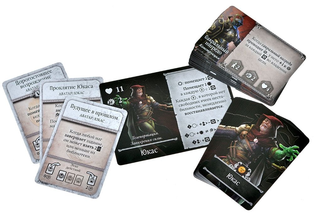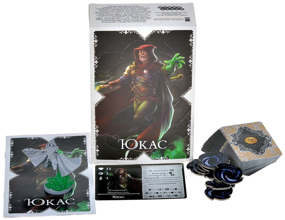 "Юкас" – это дополнение, которое добавляет в игру одноимённого аватара. Он умеет манипулировать пространством и временем, а ещё имеет свои особые правила. В коробке вы найдёте карту аватара, карты приказов, воплощений и событий аватара, а также 12 особых жетонов вихрей. Испытайте себя в бою с далеко не самым заурядным противником!