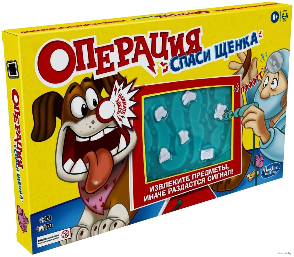 В игре "Операция. Спаси щенка" с помощью магнитной доски вы должны спасти пса, удалив несъедобные предметы, перемещая их вдоль его живота.
