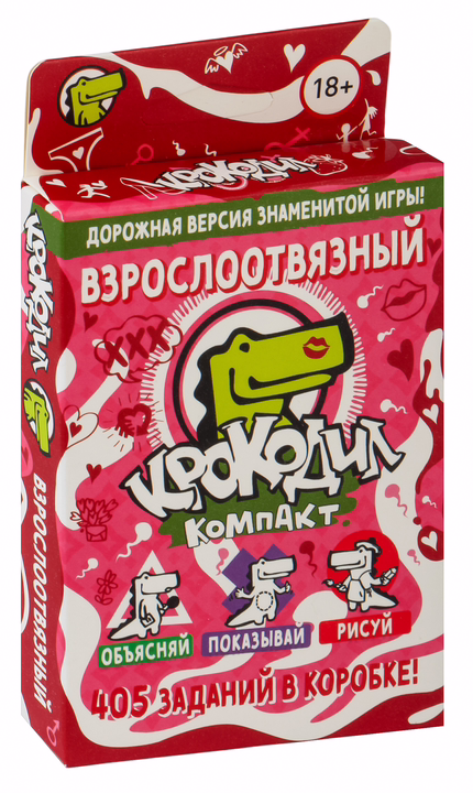 Настольная игра Крокодил ВзрослоОтвязный – весёлая, шумная и общительная игра для любой компании. Задания всех тематических наборов компактного крокодила не только играются по единым правилам. Все наборы совместимы между собой: вы можете свободно смешивать карточки с заданиями (в том числе и с большим набором "Крокодил. Большая вечеринка").