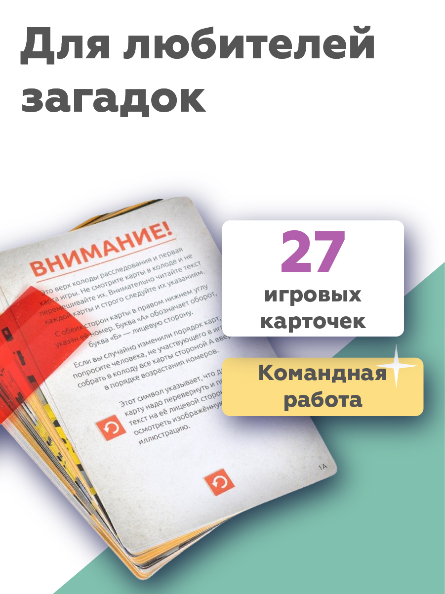 Качественный быстрый детектив. Достоинства: отличная отрисовка, полиграфия и размер карт, на мой вкус. Если вас привлекает визуальная часть игры - здесь она хорошо получилось. Улики собираются при внимательном рассмотрении карт. Логичность и интересность сюжета. Идея с дешифратором - не надо доставать смартфон) Сдожность не высокая. Можно лучше: в правилах не раскрыта игра для более чем 1. 27 карт хватит на час от силы)