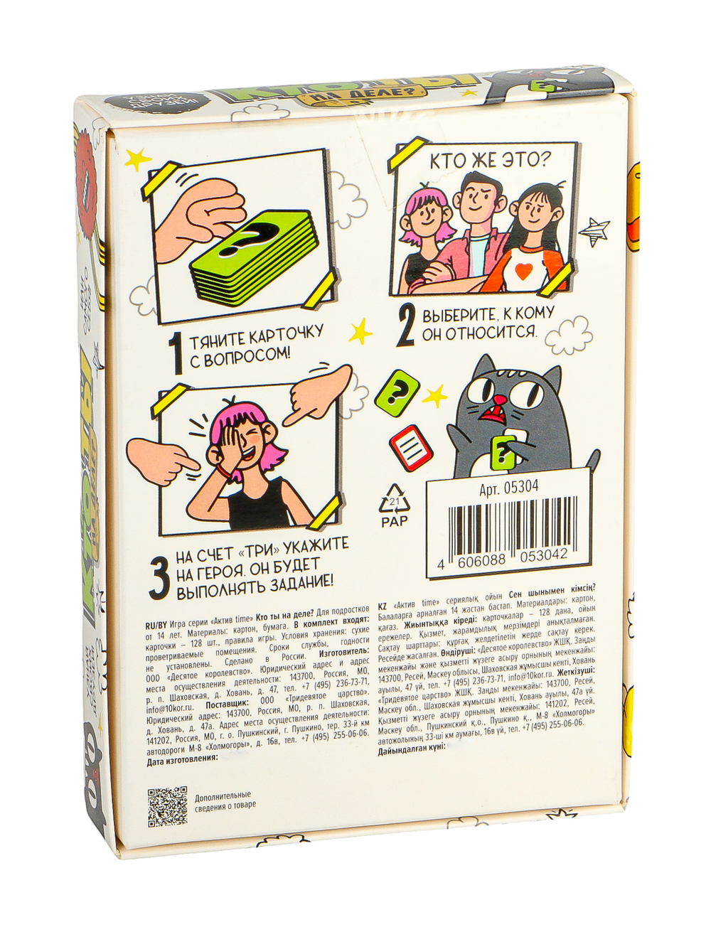 Настольная игра для детей "Кто ты на деле?" – это вариант игры для детей старше 14 лет. Узнайте, как вас видят друзья? Берите карточки с вопросами и заданиями и смейтесь над собственными и чужими шутками и выходками!