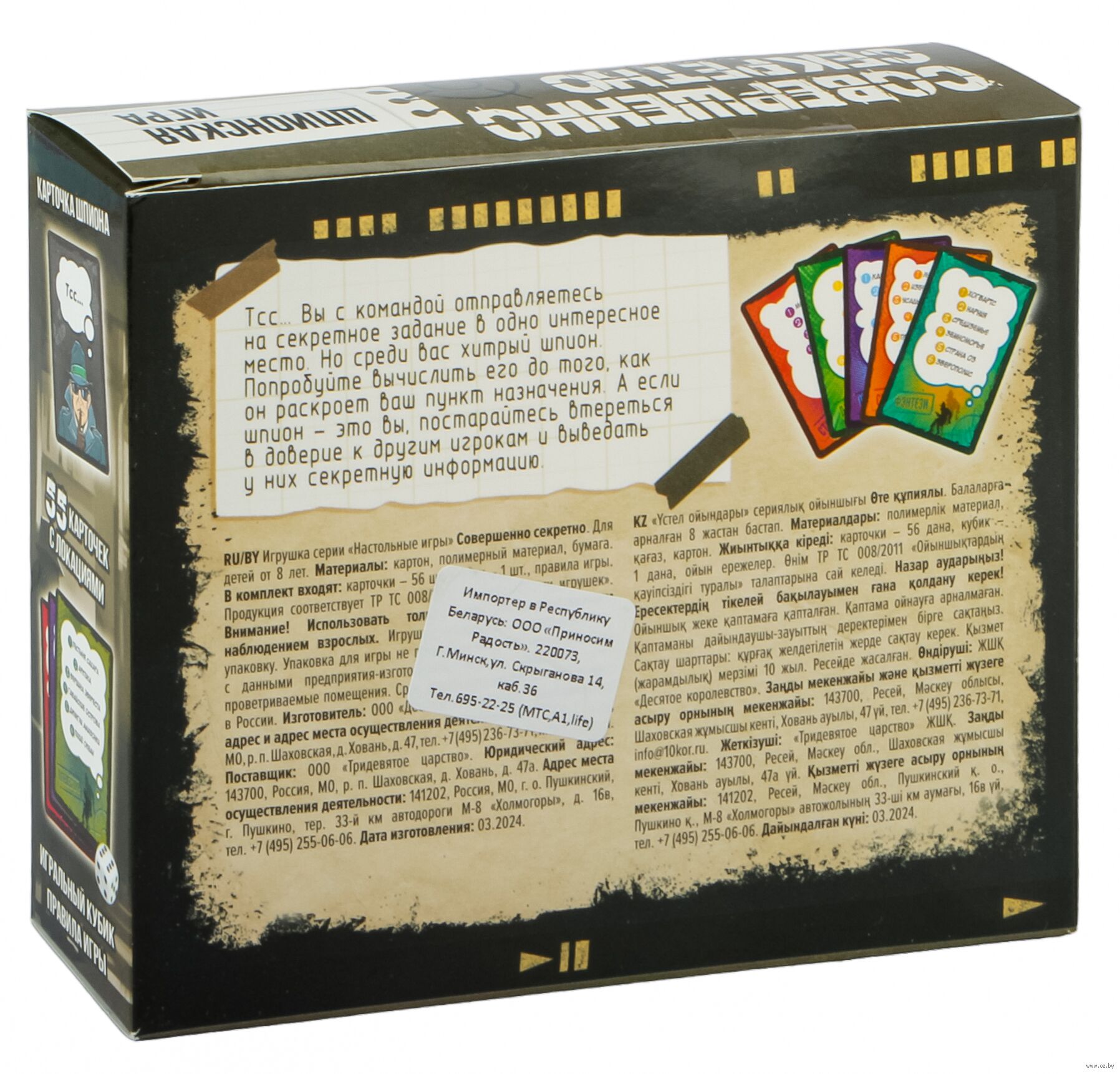 С увлекательной шпионской игрой "Совершенно секретно" вы отправитесь на секретное задание в одно тайное место. Но среди вас есть шпион, которого надо вычислить до того, как он раскроет это тайное место.