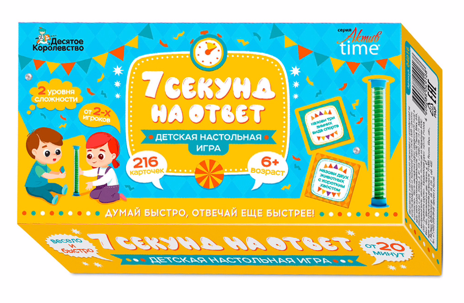 Настольная игра для детей "7 секунд на ответ!" – это игра для веселой компании, в которой вы можете блеснуть знаниями и проявить свою находчивость.