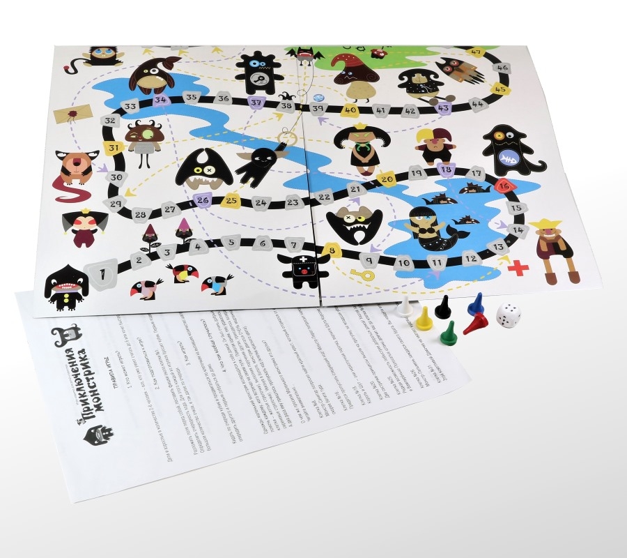 Однажды маленький Монстрик возвращался к себе домой. Он был очень добрый и дружелюбный, поэтому старался помочь каждому, кого встречал на своем пути. Такова предыстория к началу этой интересной и увлекательной настольной игры-ходилки.