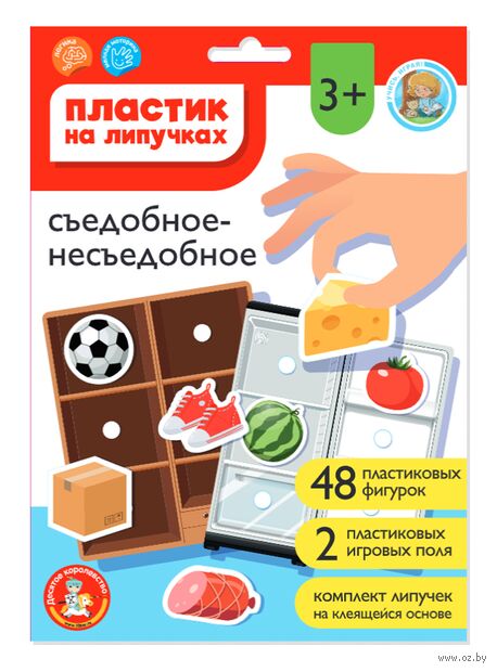 Пластик на липучках "Съедобное-несъедобное" способствует развитию у ребенка мелкой моторики, логического мышления и визуальной памяти.