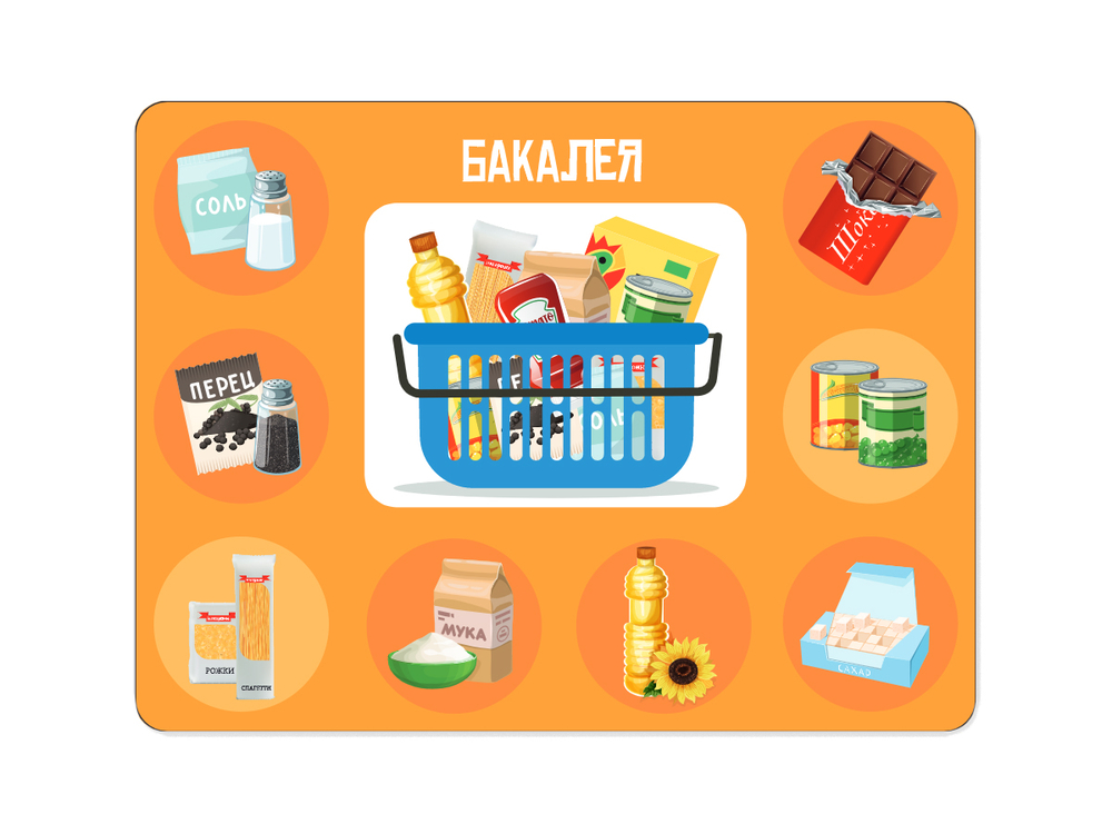 Познакомьте вашего ребёнка с ассортиментом продуктового магазина: какие продукты можно купить и в каких отделах магазина.