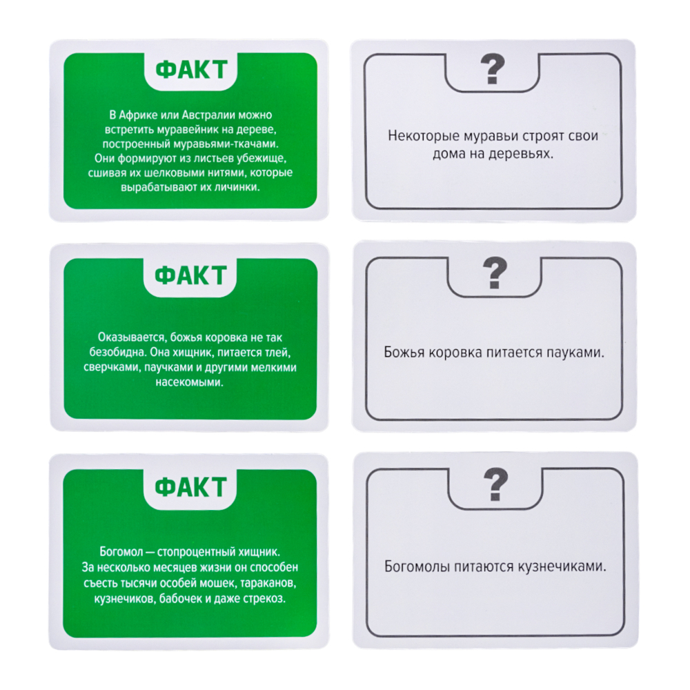 Детская настольная игра для большой компании – это увлекательная игра в "походном" формате, которую можно взять с собой на вечеринку, в гости или в дорогу. С этой игрой вы можете проверить уровень знаний о насекомых и интересно провести время в кругу друзей.