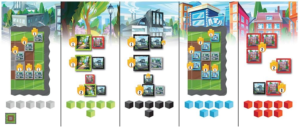 Правильно размещайте постройки, чтобы помочь вырасти процветающему городу. Создатель лучшего квартала побеждает в игре!