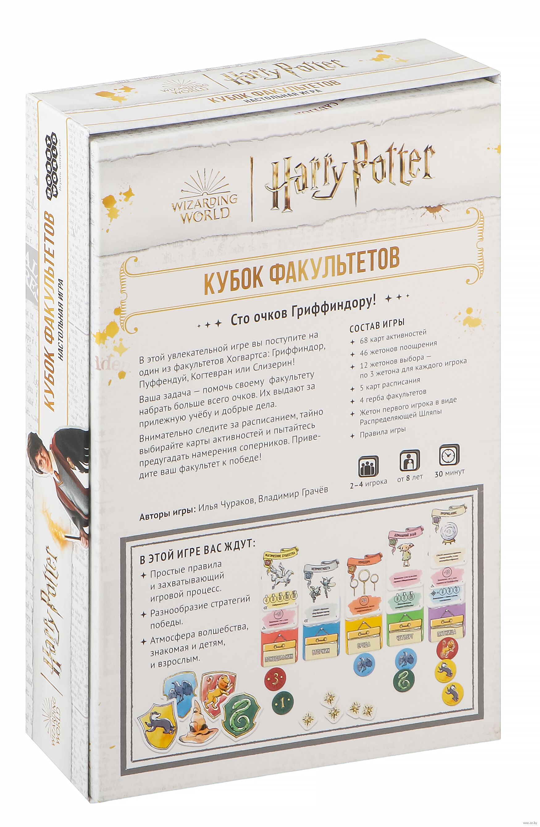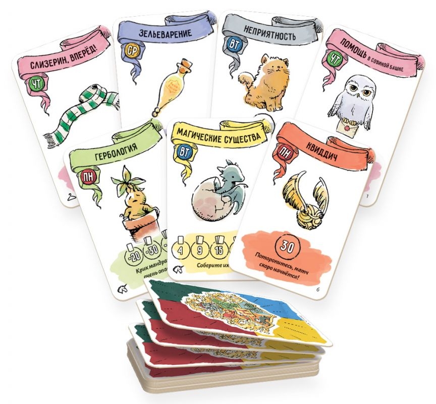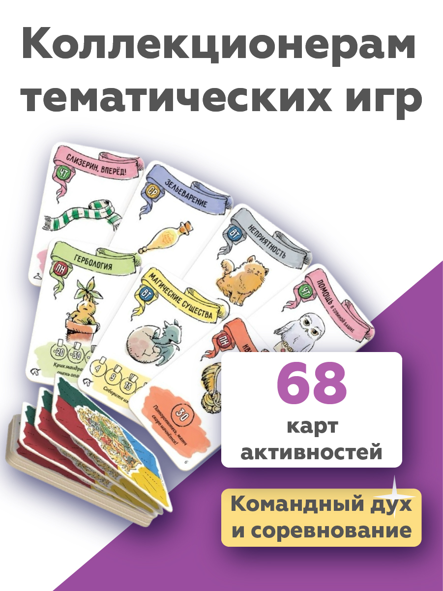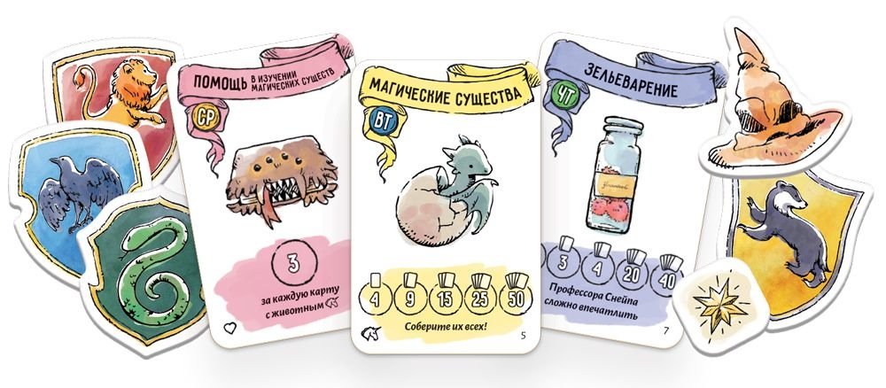 Ваша задача – помочь своему факультету набрать больше всего очков. Их выдают за прилежную учёбу и добрые дела. Внимательно следите за расписанием, тайно выбирайте карты активностей и пытайтесь предугадать намерения соперников. Приведите ваш факультет к победе!
