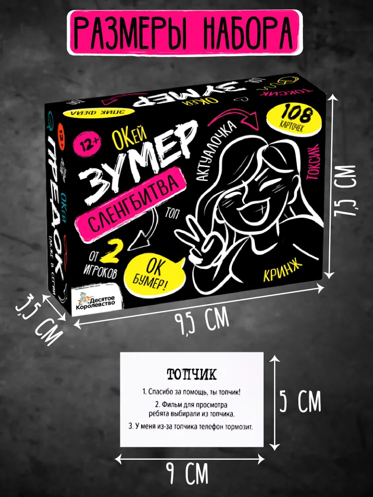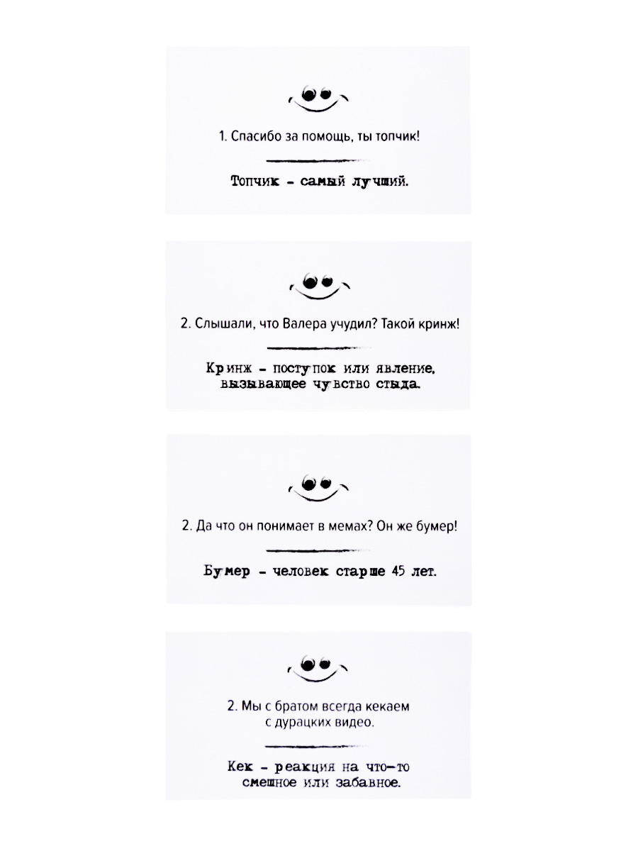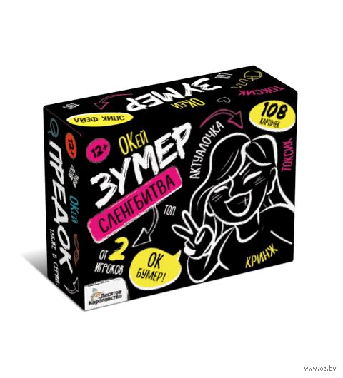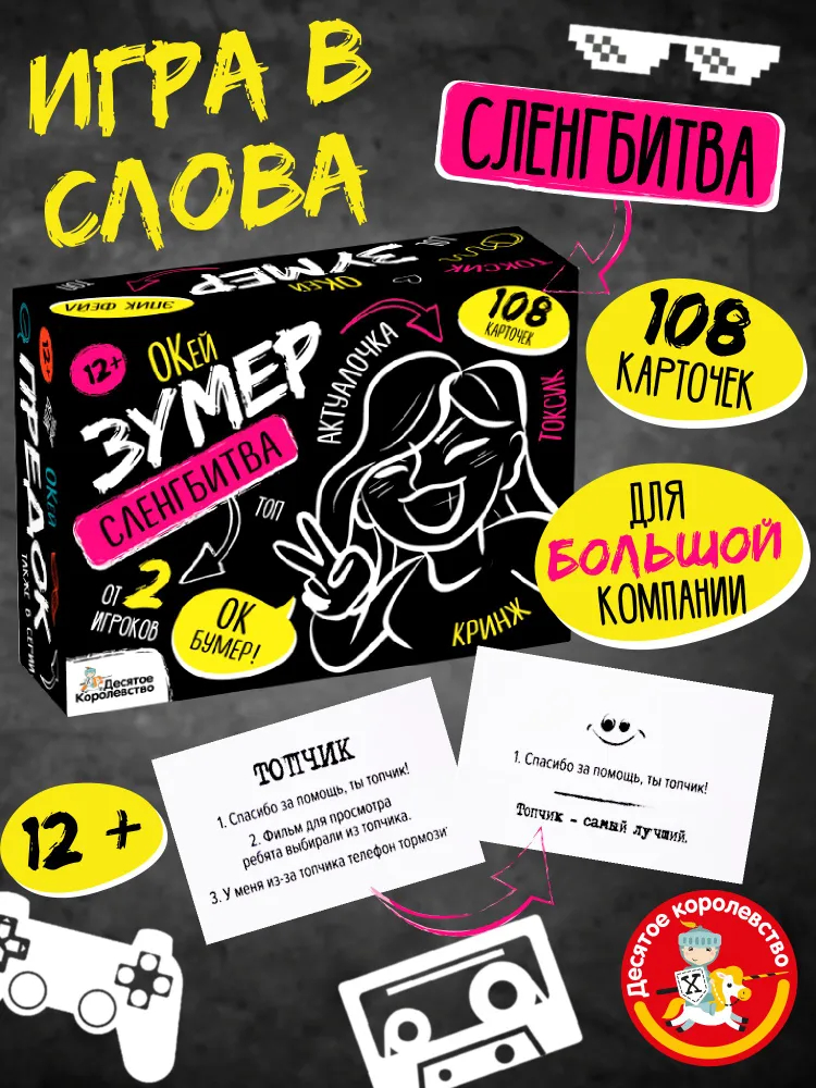 Настольная игра для большой компании «Сленгбитва. Окей Зумер» развивает эрудицию и сплачивает компанию.