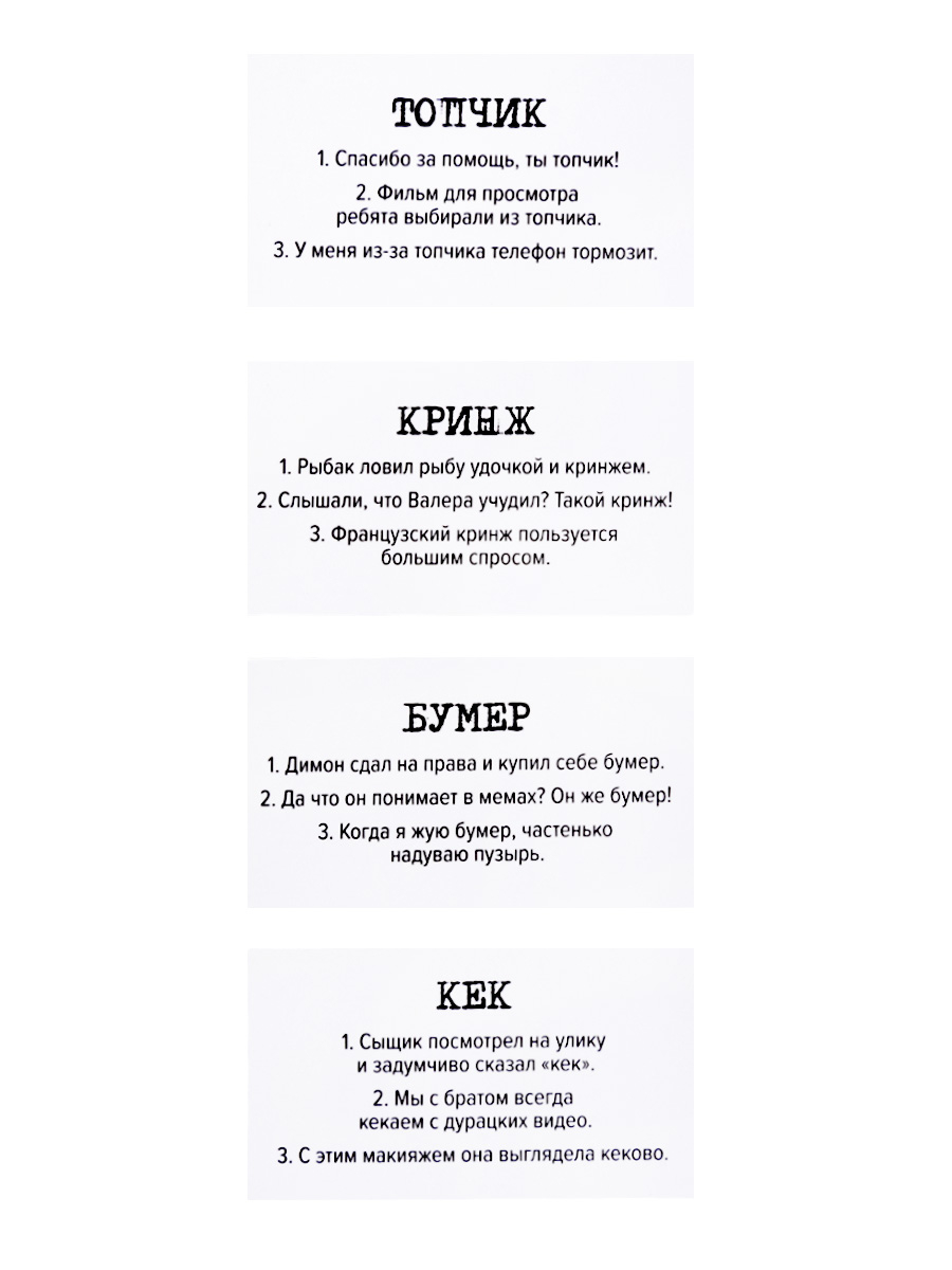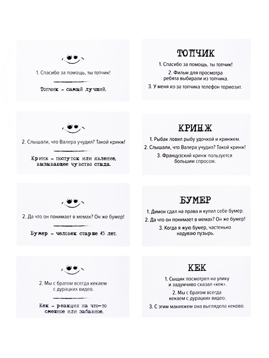 С настольной игрой для большой компании «Сленгбитва. Окей Зумер» игроки должны правильно ответить на вопросы: что такое «зашквар« и «пранк«? Кто такой «гик» и «читер»?