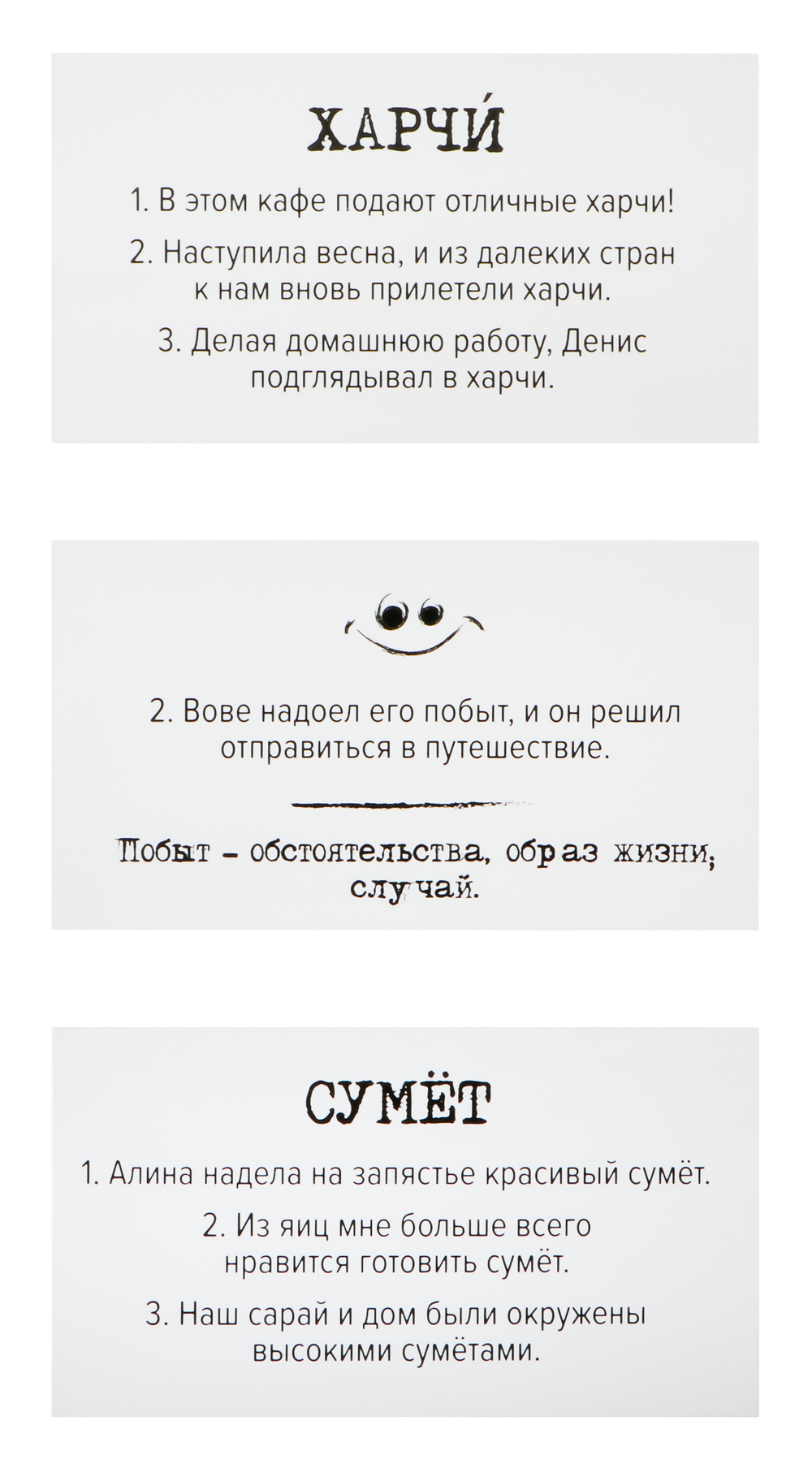 | Размер карт | 5х9 см |