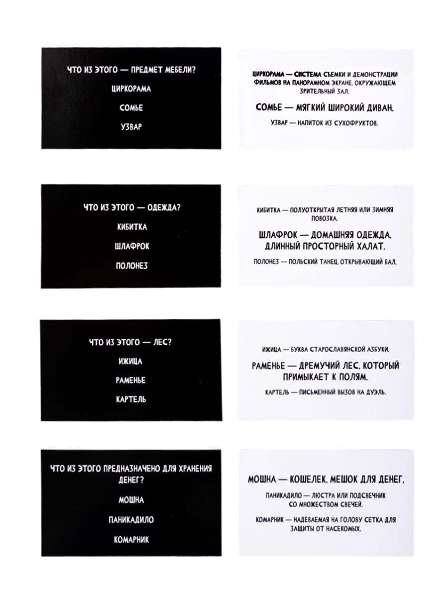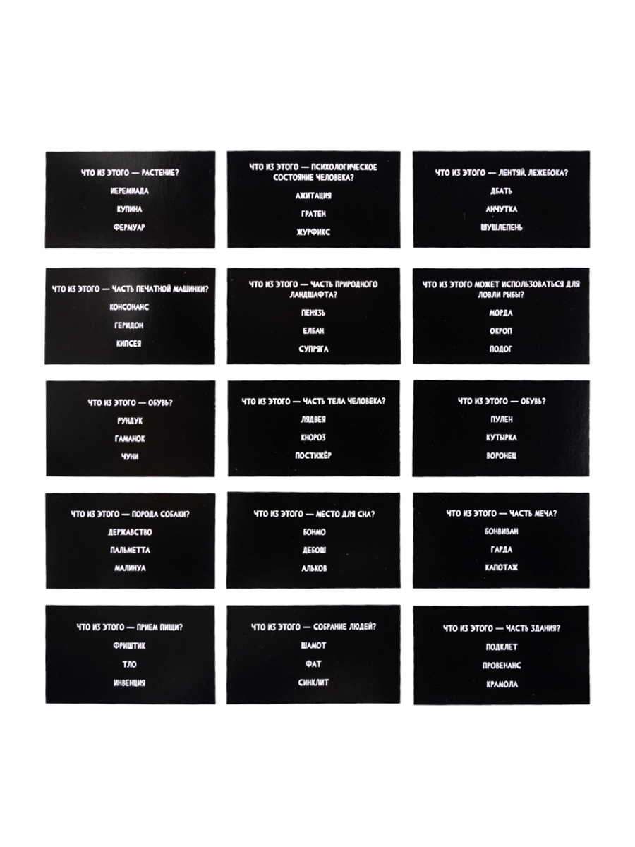 Настольная игра для большой компании "Сумбурный квиз. Что это за слово" – это интеллектуально-развлекательная игра, в которой игроки могут проверить эрудицию и отгадать правильное значение разных слов.