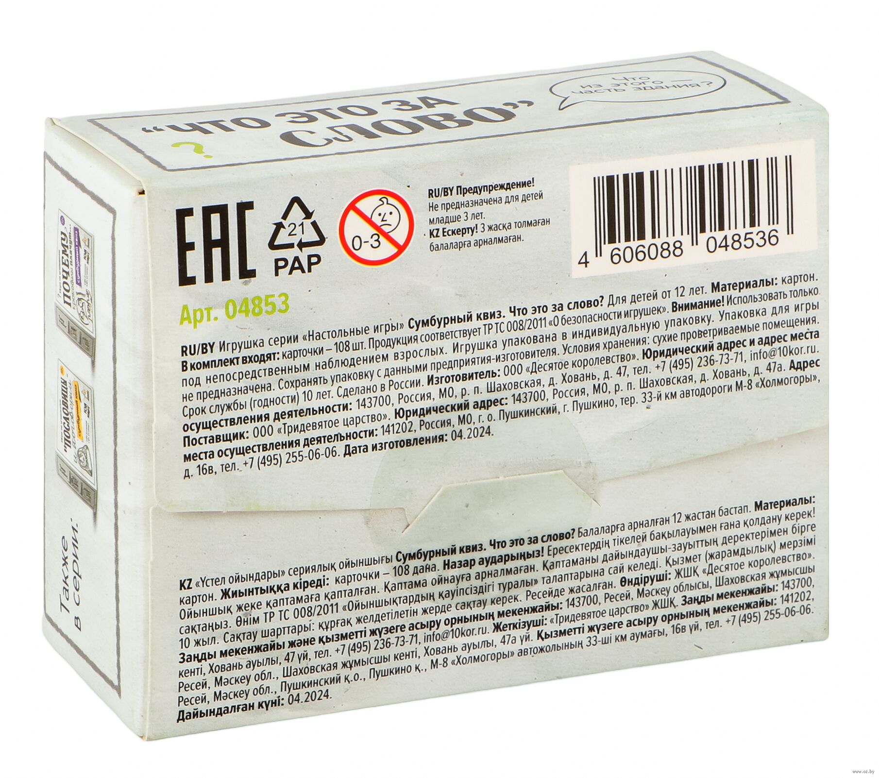 | Изготовитель | ООО "Десятое королевство". Россия, 143720, Московская область, Шаховской район, д. Ховань, д. 47 |