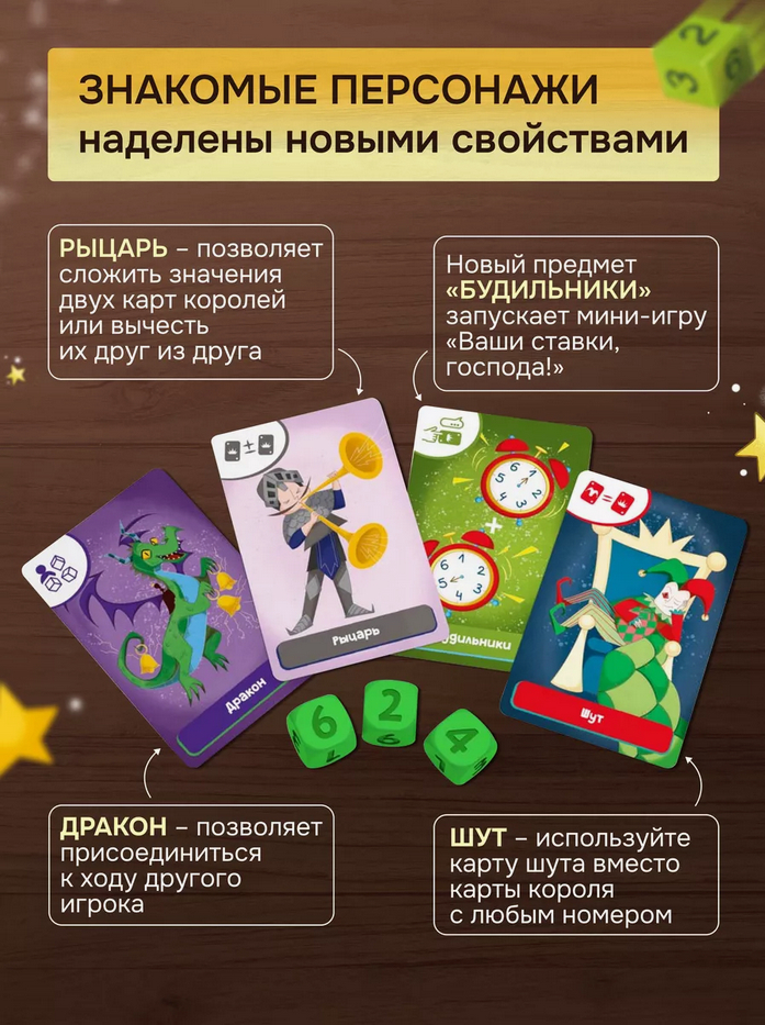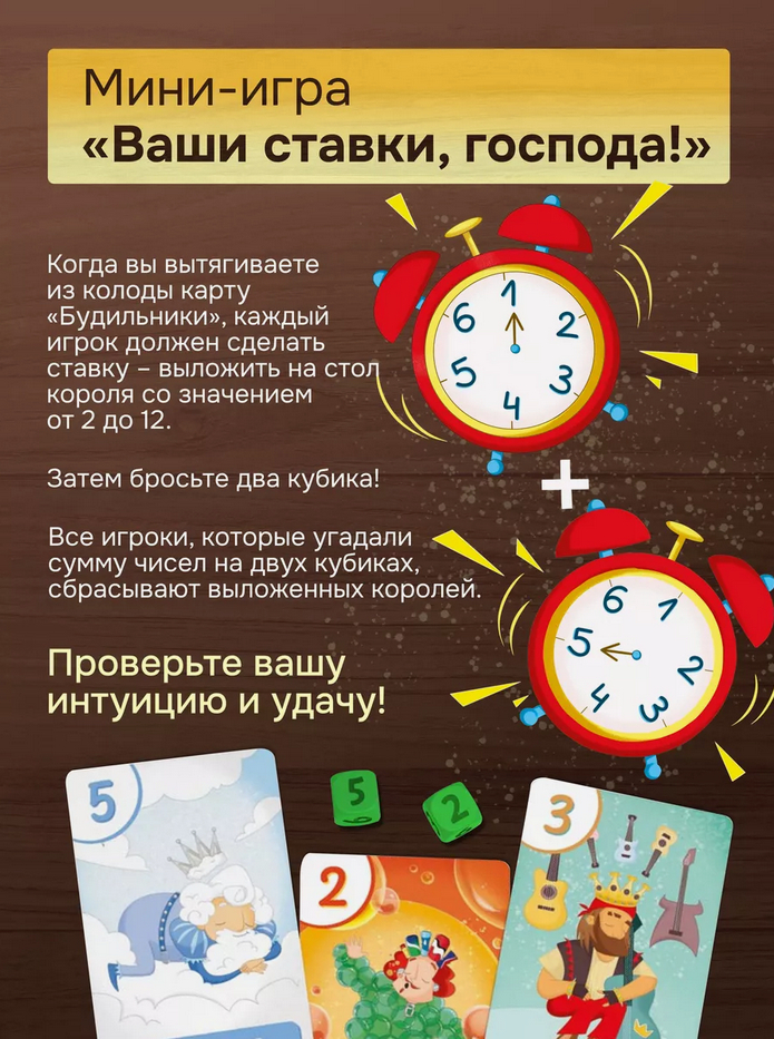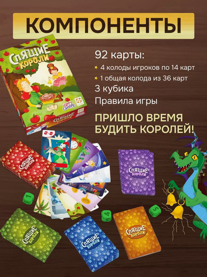 Королевам предстоит выручать своих королей, ведь под влиянием сонных чар все они уснули, причём в очень неожиданных местах! Кто же будет решать самые важные государственные вопросы? Вместе с командой других персонажей помогите королевам как можно скорее пробудить ото сна всех королей звонкими колокольчиками-кубиками!