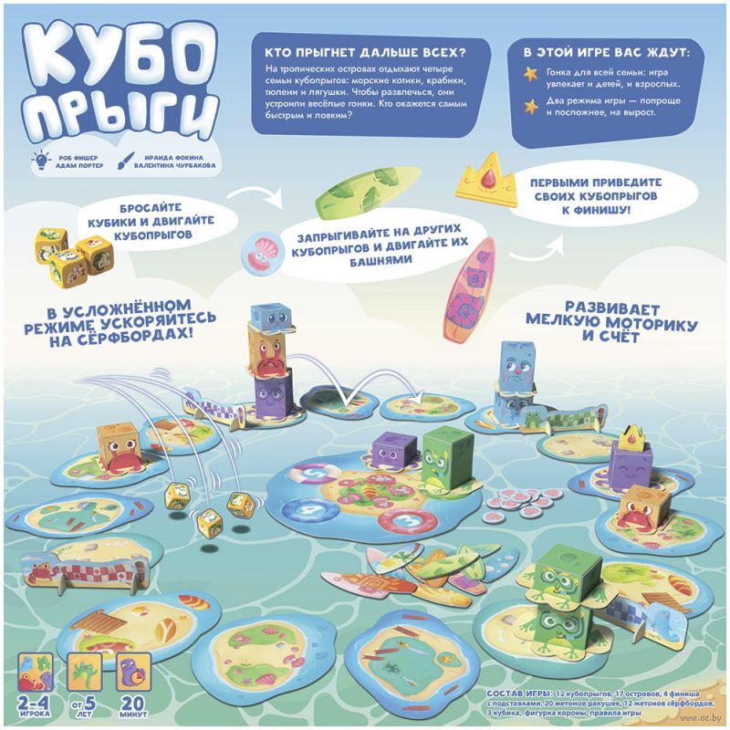 На тропических островах отдыхают четыре семьи кубопрыгов: морские котики, крабики, осьминоги и лягушки. Чтобы развлечься, они устроили весёлые гонки. Кто окажется самым быстрым и ловким?
