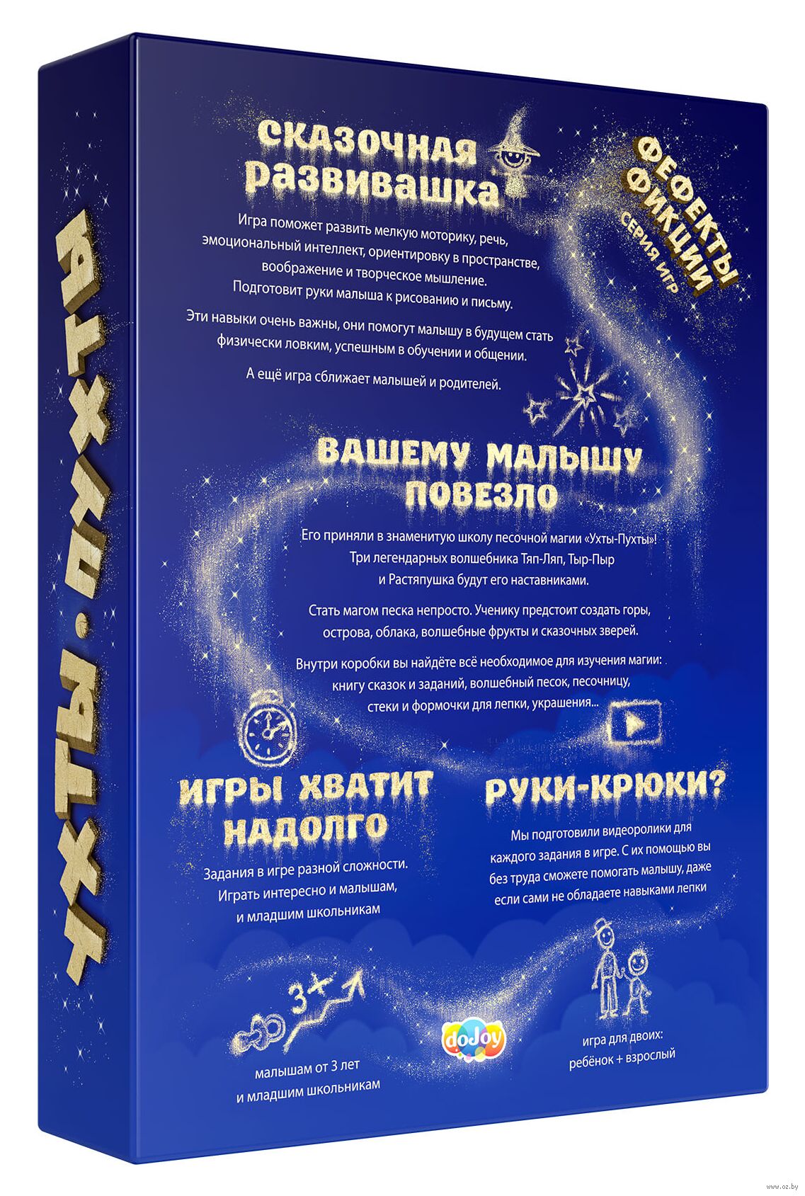 Малыш попадает в школу песочной магии "Ухты-Пухты"! Его наставниками станут три легендарных волшебника, которые будут давать маленькому игроку задания: создавать разные фигуры из кинетического песка и других компонентов.