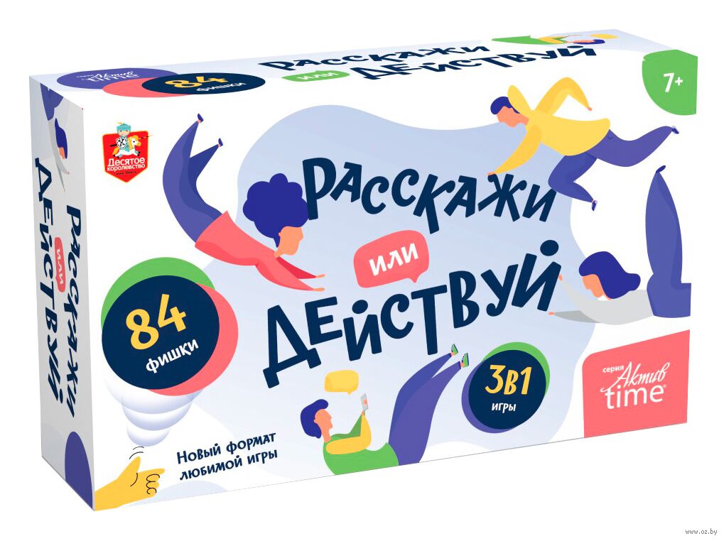 Настольная игра для детей "Расскажи или действуй" 3 в 1. Серия Актив time – это игра на смелость, честность, креативность. Отвечайте на смешные и неожиданные вопросы и выполняйте забавные задания в кругу друзей! Узнавайте то, о чем никогда не спрашивали!