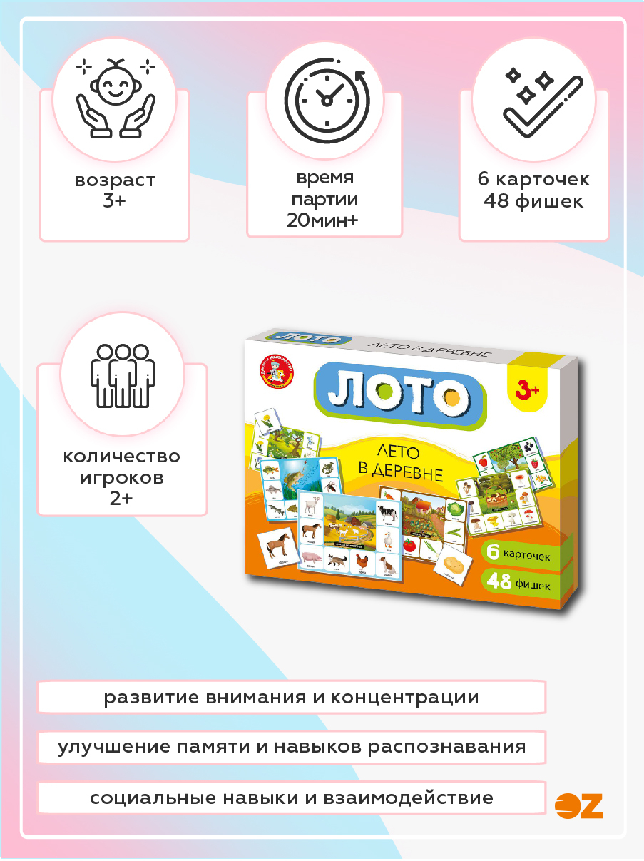 Лото для малышей "Лето в деревне" (большое) – это развивающая игра, поможет ребенку лучше узнать окружающий его мир и познакомиться с тем, что может окружать его вдали от городской среды – овощи, ягоды и фрукты, грибы, цветы, домашние животные и обитатели рек. Каждое игровое поле посвящено одной из перечисленных тем.