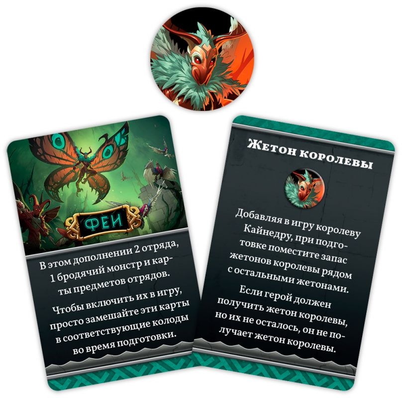 Дополнение добавляет в игру "Кромешная тьма: Преисподняя" два новых отряда: гарпий и тёмных пикси (лидеров и приспешников), а также нового бродячего монстра: королеву Кайнедру. Гарпии используют превосходство в воздухе и ловко похищают Светоносных с земли, утаскивая их прочь. Тёмные пикси способны вытягивать из героев жизненные силы, тратя их на своё лечение. Королева Кайнедра – могущественная фея-ведьма, умеющая увеличивать защиту своих приспешников и проклинать врагов!