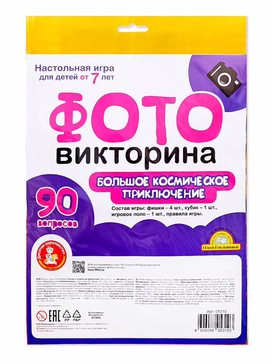 Настольная игра ходилка "Большое космическое приключение" ФОТОвикторина – это увлекательная игра, которая познакомит вас с планетами и спутниками Солнечной системы, созвездиями, летательными аппаратами, выдающимися космонавтами и героической истории освоения космоса. Узнавайте новое в каждой игровой партии!