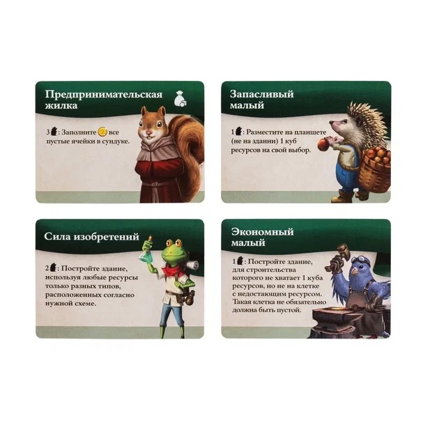 Молва о ваших успехах разлетелась далеко за пределы леса. Всё больше умельцев приезжают посмотреть на чудеса урбанизации и предлагают свои идеи по благоустройству. Дайте им приют и работу, а взамен зверушки помогут перестроить здания, приумножить ресурсы и внедрить архитектурные новшества. Кажется, ваши города скоро перестанут быть такими крошечными!