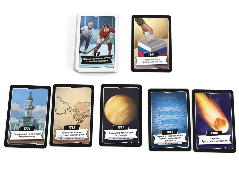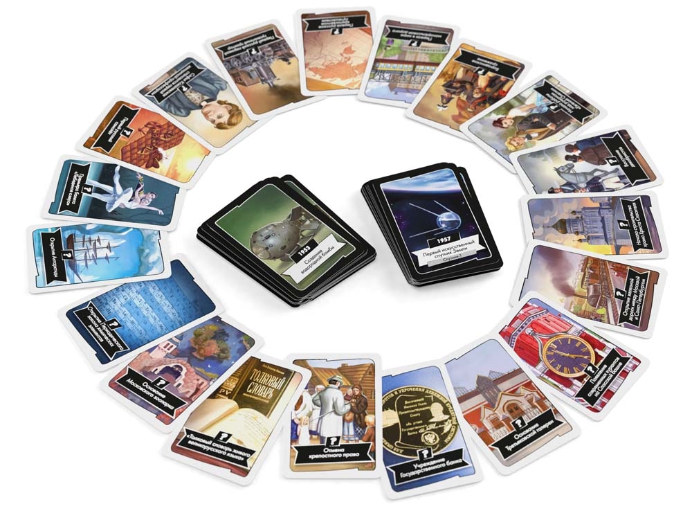 В игре "Таймлайн. История России" вы будете задавать себе аналогичные вопросы каждый раз, когда попытаетесь сыграть одну из своих карточек. У вас лишь одна цель: первым верно разместить свои карточки на оси времени.