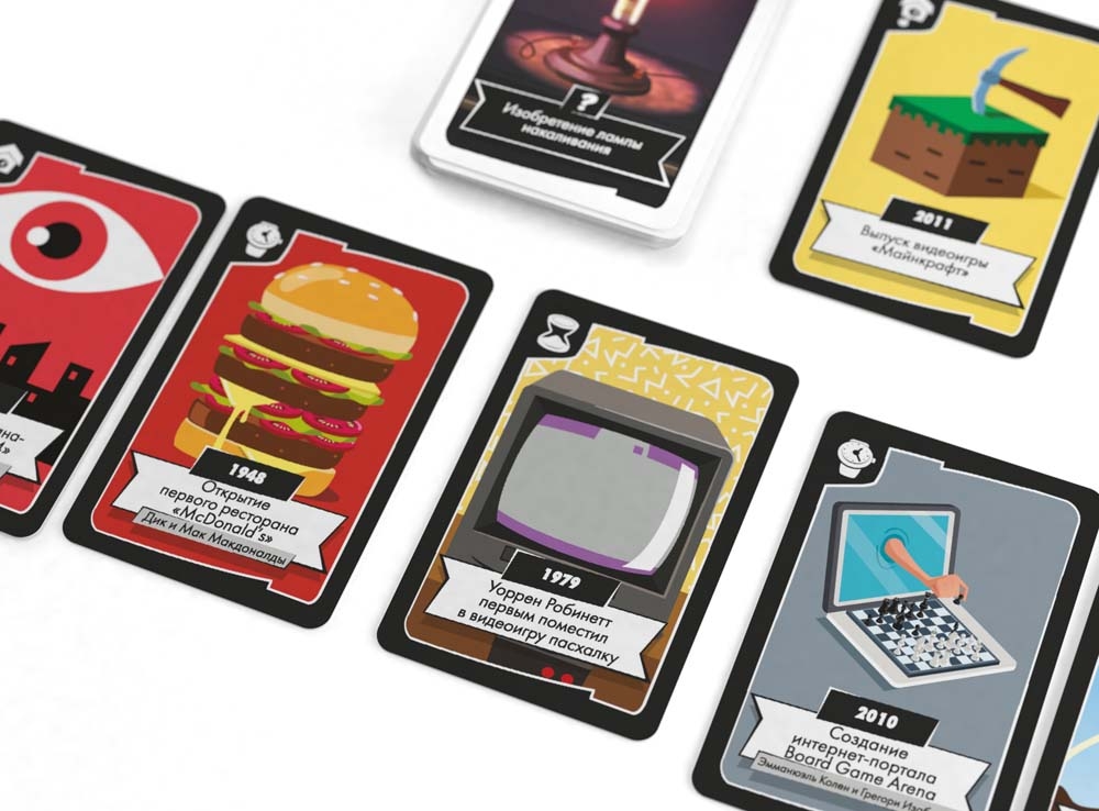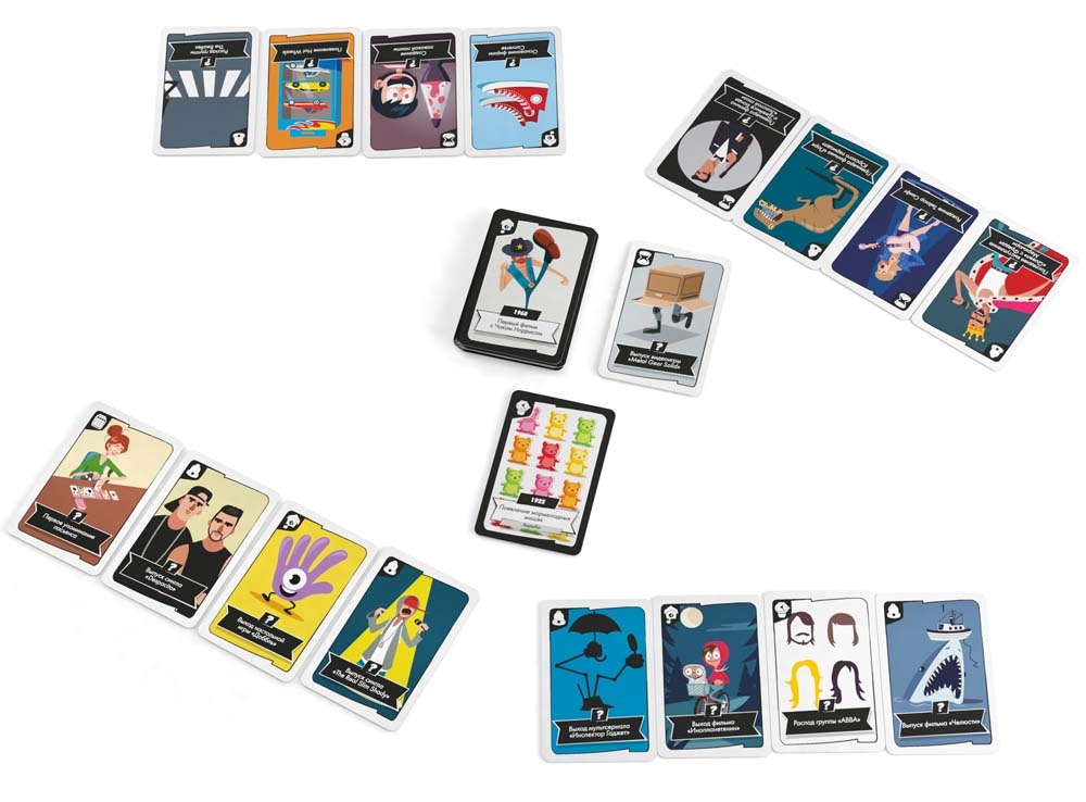 Под какую песню танцевал весь мир раньше – под "Despacito" или "Gangnam Style"? Премьера какого фильма состоялась сначала – "Титаника" или "Парка Юрского периода"? А "Тетрис" придумали до "Пакмана"... или после него? В игре "Таймлайн Твист. Популярная культура" вы будете задавать себе аналогичные вопросы каждый раз, когда попытаетесь сыграть одну из своих карточек.
