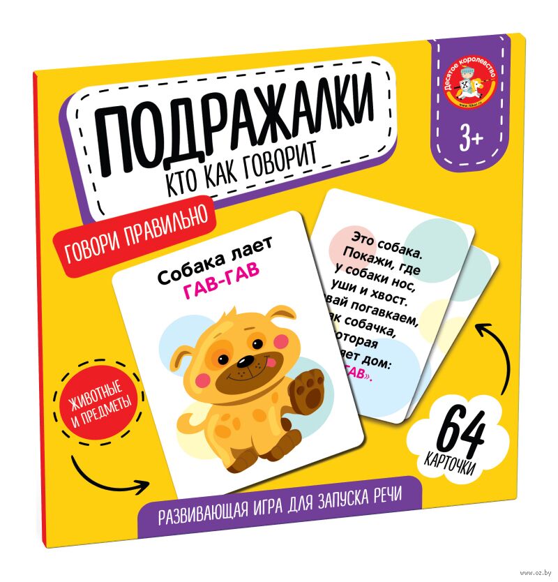 Развивающая настольная игра для детей «Кто как говорит» подражалки – это игра для малышей, которая помогает тренировать артикуляционный аппарат, дает возможность соотносить слова и предметы, тем самым ускоряя переход к полноценной речи.