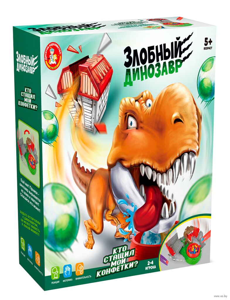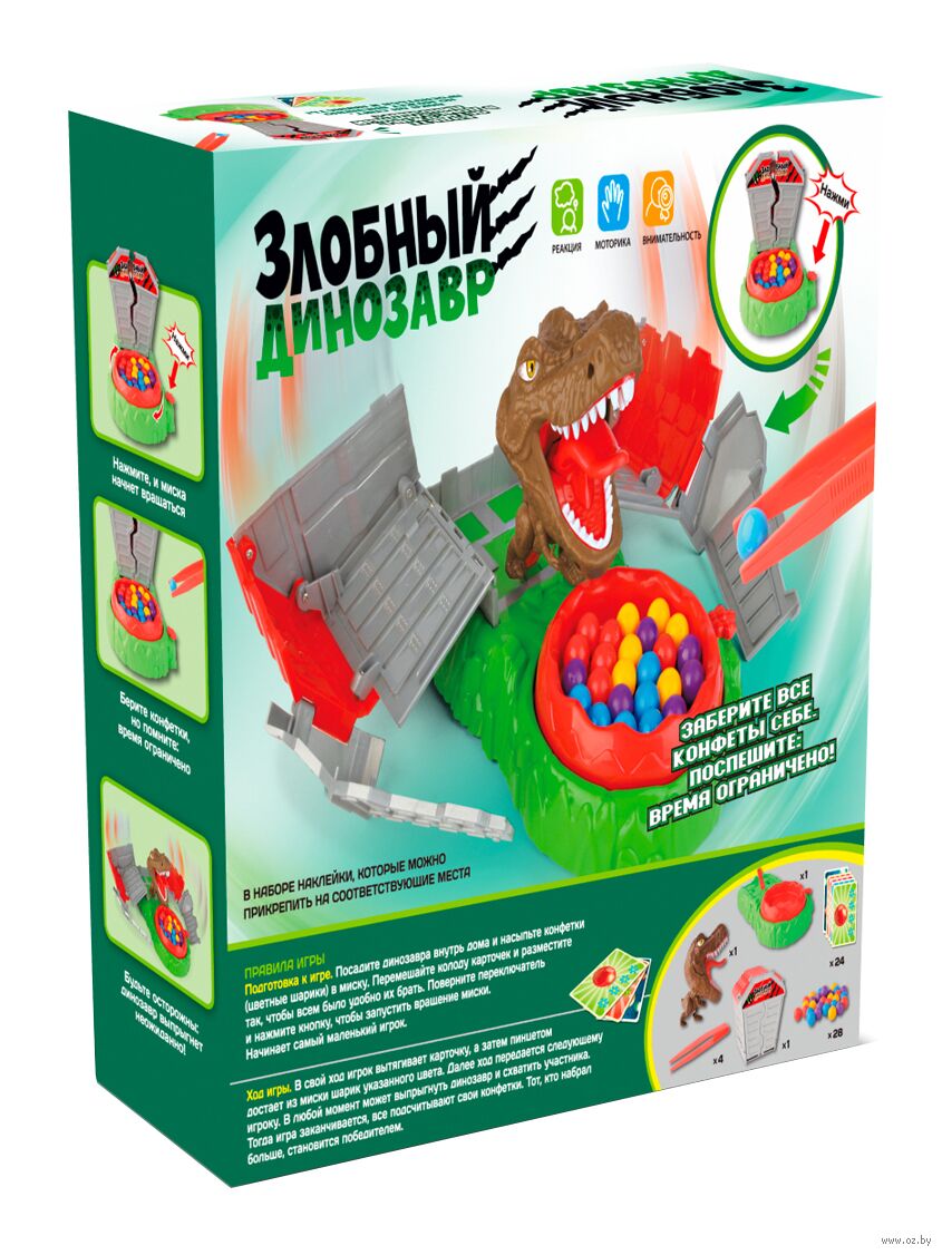 Настольная игра для детей "Злобный динозавр" – это интересная игра на быстроту реакции. В нее могут играть одновременно 2-4 игрока. Цель игры – забрать у динозавра как можно больше конфеток! Торопись, время ограниченно!
