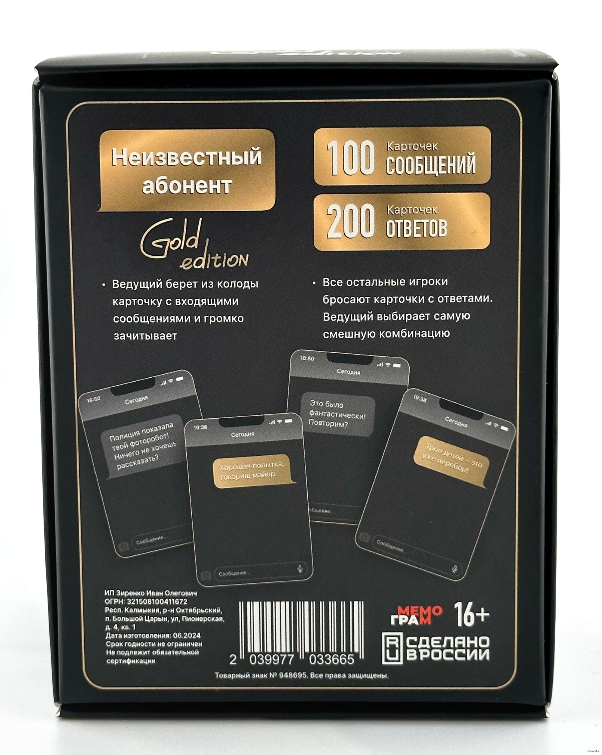 "Неизвестный абонент Gold" – это игра для любой компании с текстовыми сообщениями, где игроки соревнуются в создании самых смешных комбинаций входящих и исходящих СМС-ок.