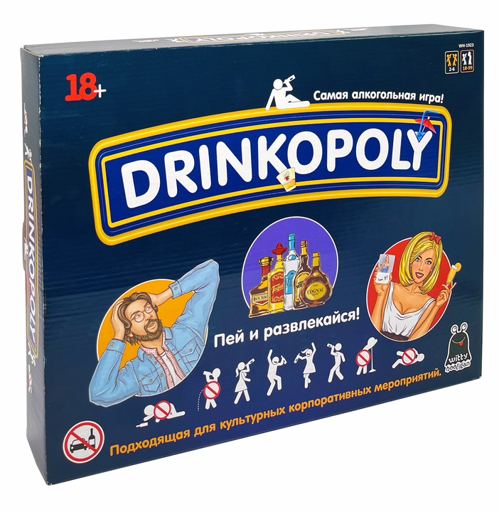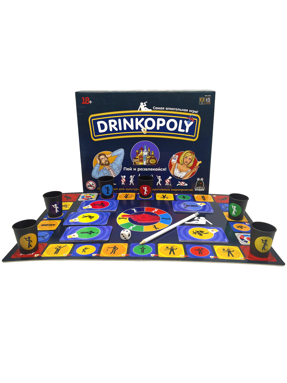 Игра для тех, кто готов принять вызов и в ответ произнести свой изящный тост. Drinkopoly предлагает все необходимое для "культурного корпоративного мероприятия", студенческих посиделок, вечеринок в больших и малых компаниях и любых других вечеринок, которые вы хотели бы оживить выпивкой.