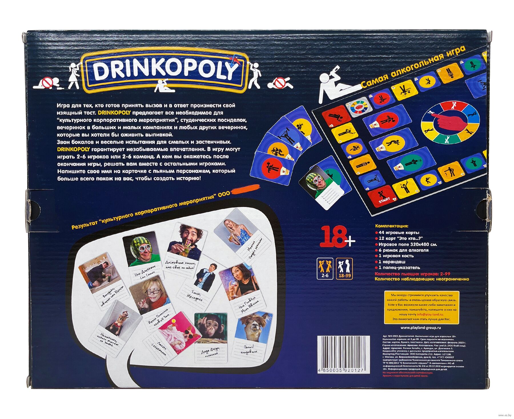 Звон бокалов и веселые испытания для смелых и застенчивых. Drinkopoly гарантирует незабываемые впечатления. В игру могут играть 2-6 игроков или 2-6 команд.