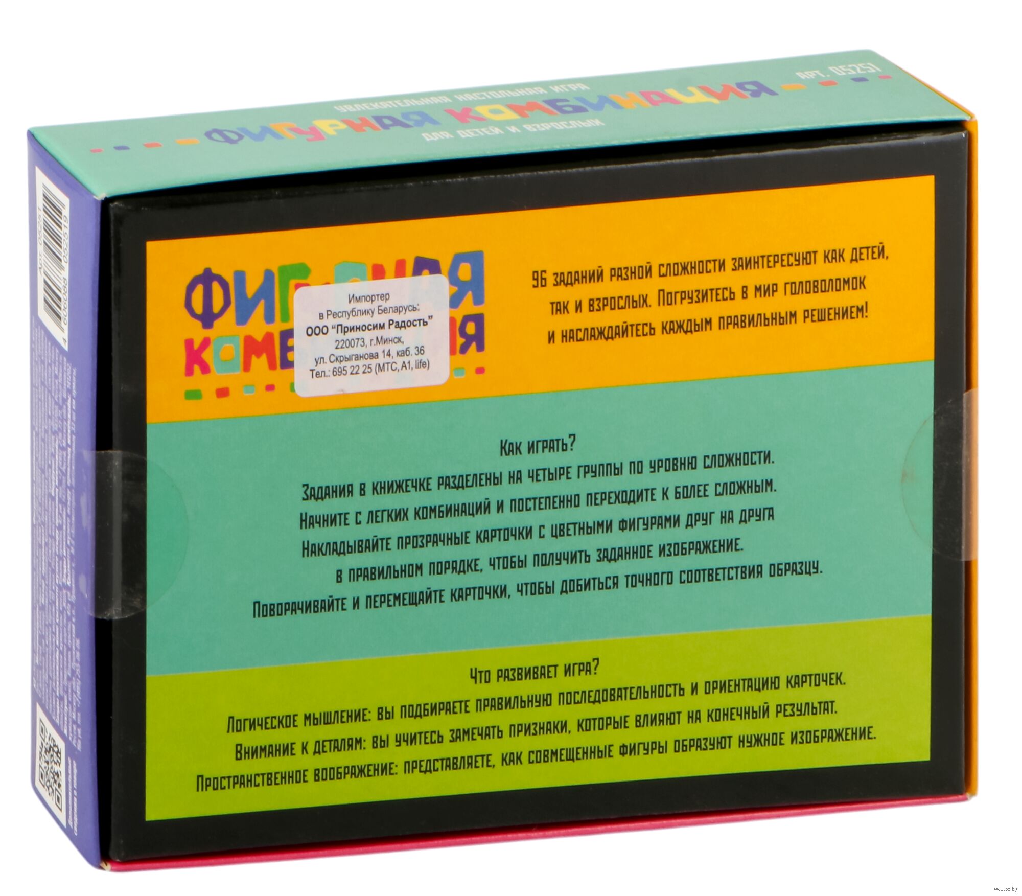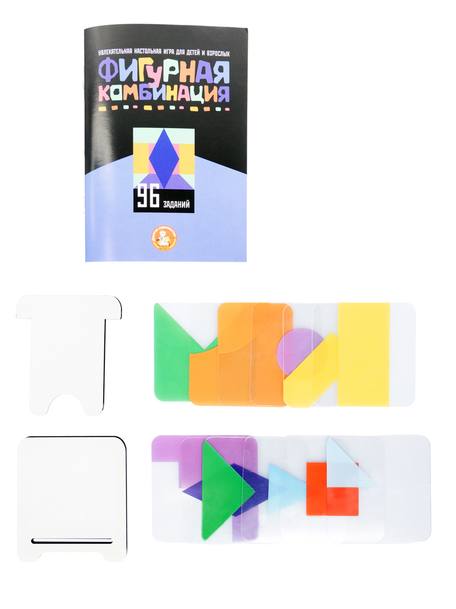 Настольная игра для детей и взрослых "Фигурная комбинация" – это игра-головоломка, с 96 заданиями разных уровней сложности, которая заинтересует как детей, так и взрослых.