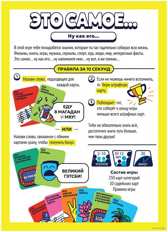 В этой игре вам понадобятся знания, которые вы так тщательно собирали всю жизнь. Фильмы, книги, игры, музыка, сериалы, спорт, еда, люди, мир, интересные факты.