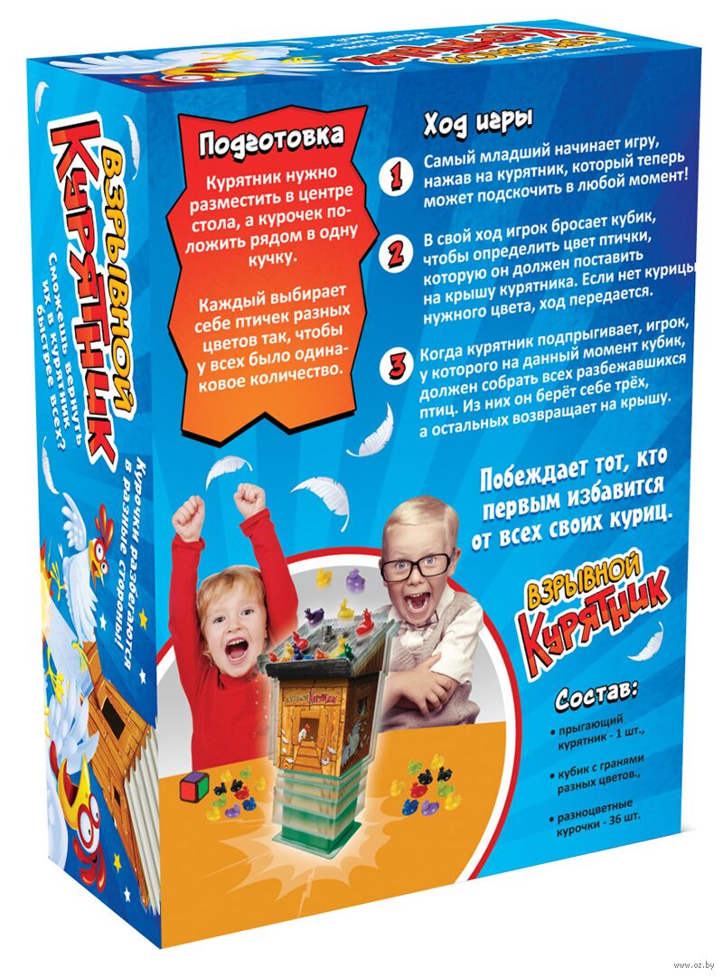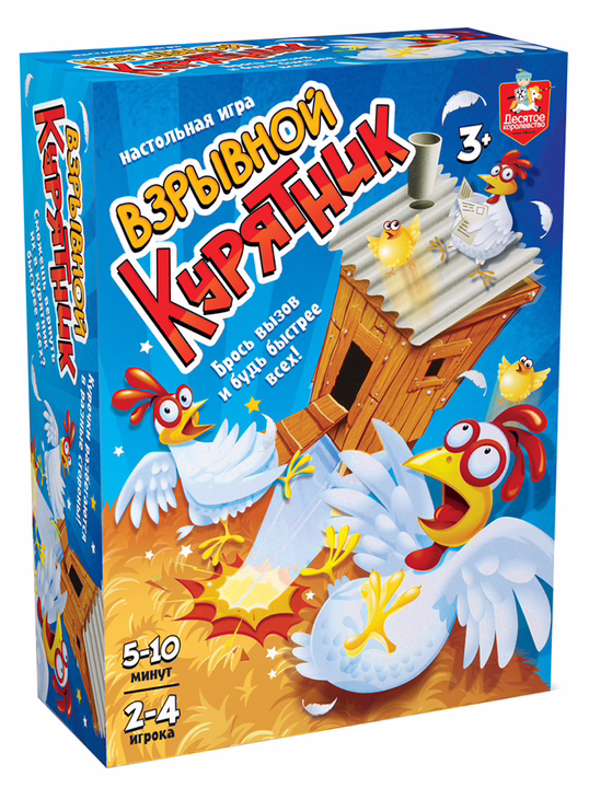 Настольная игра для детей "Взрывной курятник" – это игра на быстроту реакции для 2-4 игроков. Задача – быстрее всех вернуть кур в курятник.