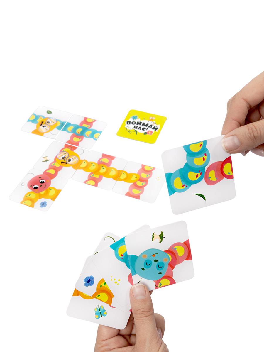 Настольная игра "Поймай нас!" – это веселая игра для 2-6 игроков, цель которой поймать гусениц и набрать больше всех баллов.
