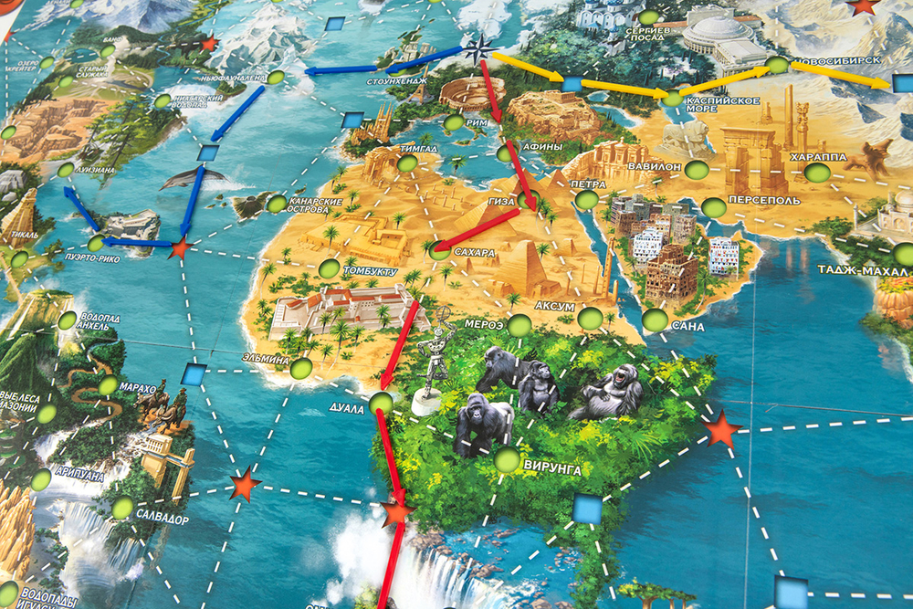 Рассчитывайте маршруты, управляйте экспедицией, пытаясь в свой ход добраться до цели – общей или личной. За это начисляются очки победы. Выполненные общие цели заменяются на новые из колоды, это не даст расслабиться и заскучать.