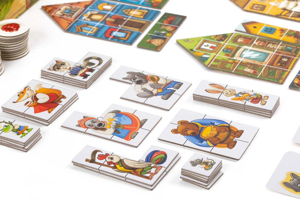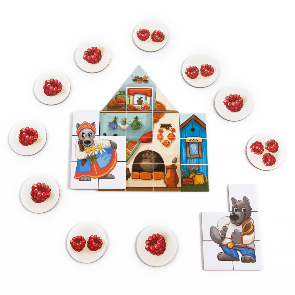 Планшеты теремков и пристроек расчерчены на клеточки, и фигурки сказочных персонажей занимают их. Чем больше клеточек теремка будет занято, тем больше малинок получит игрок. Но если пожадничает – теремок не выдержит и развалится.