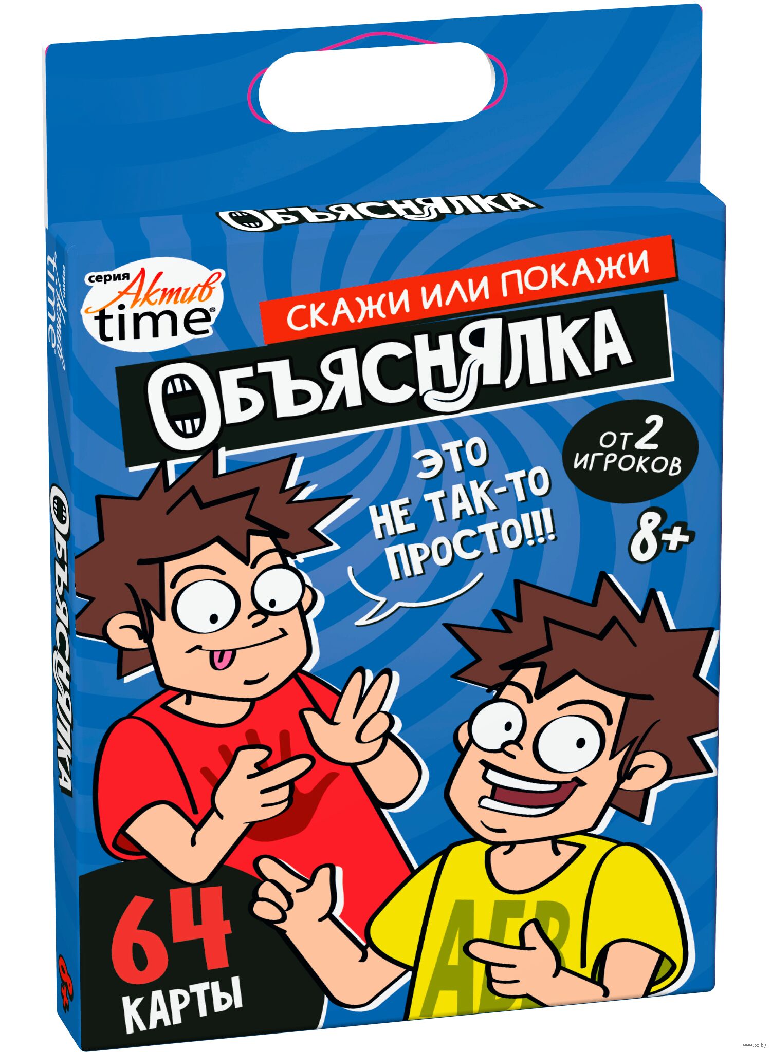 Веселая настольная игра Объяснялка "Скажи или подскажи". Серия "Актив time" – это игра для компании из 2 и более игроков. Тяни задание и объясняй заданные слова, не произнося ни звука, используя жесты!