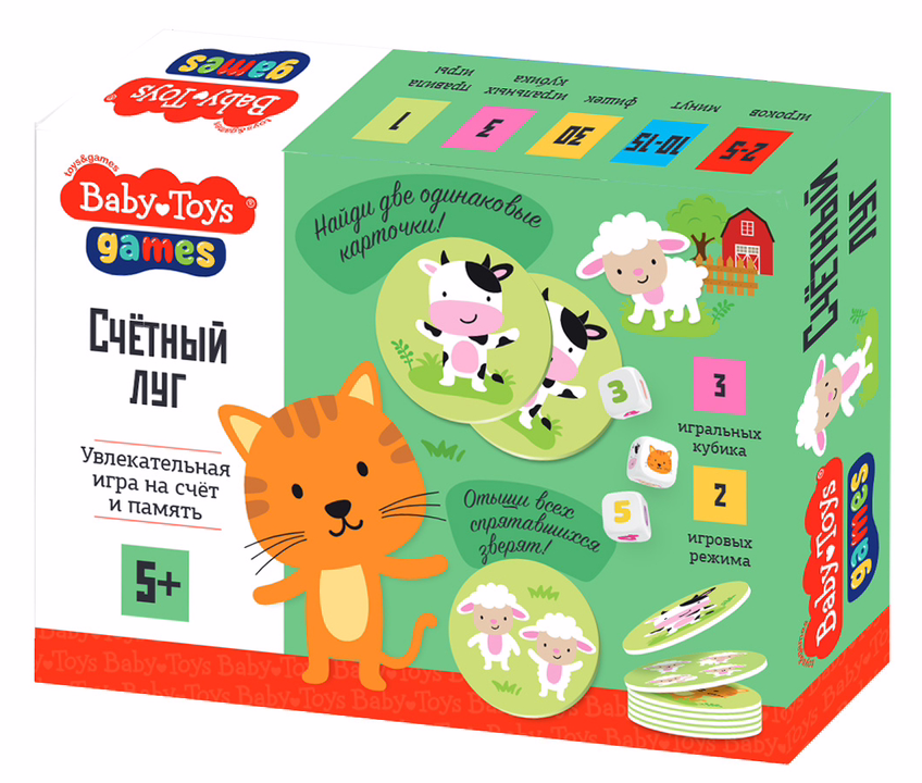 Настольная игра для малышей "Счетный луг" – это увлекательная игра на счет и память. В игре могу принимать участие от 2 до 5 игроков.