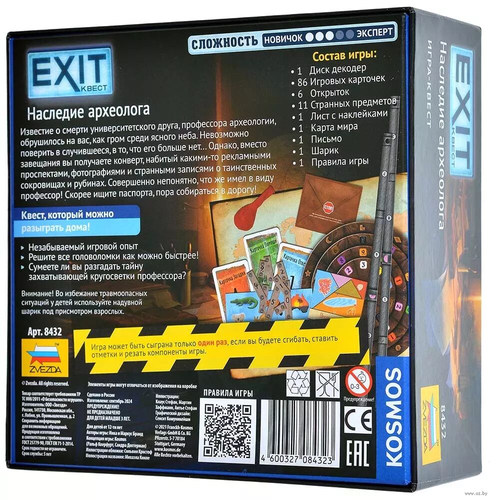 Серия "EXIT-Квестов" позволит вам, не выходя из дома, окунуться в мир квестов в реальности – невероятно популярного развлечения среди людей разных возрастов. А теперь поломать голову над задачкой, хорошенько при этом повеселившись, смогут и самые юные любители приключений и экстрима. Ваша задача – решить все загадки и успешно выбраться из квеста! Самое время приступать!