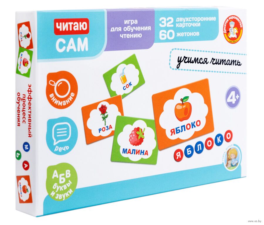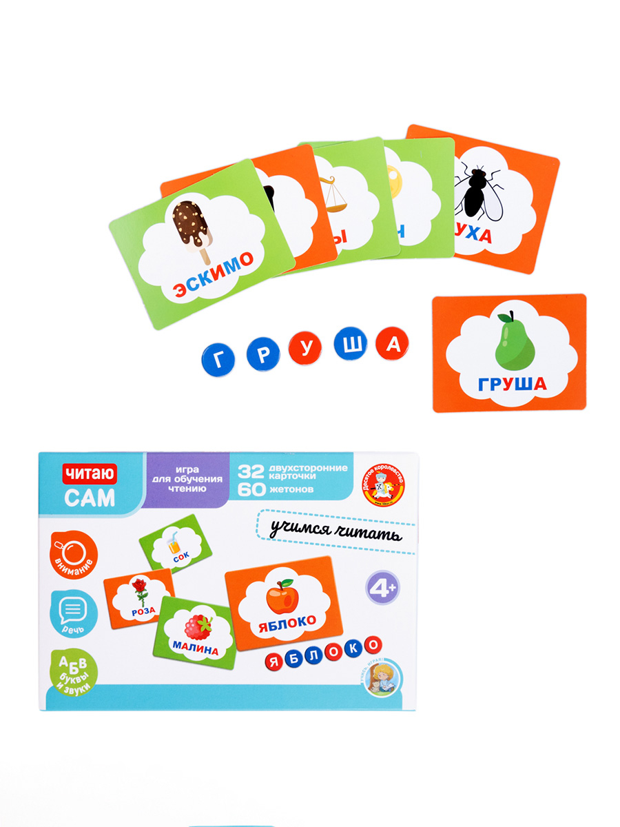 Развивающая игра для детей "Читаю сам. Учимся читать" – это набор для составления слов по заданиями на карточках.