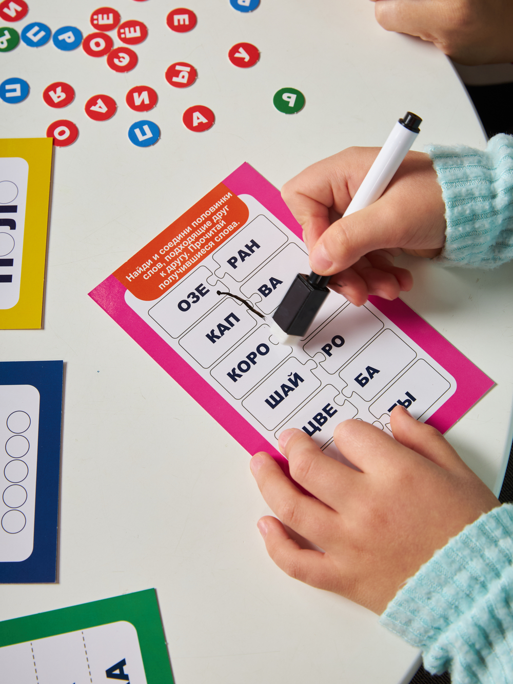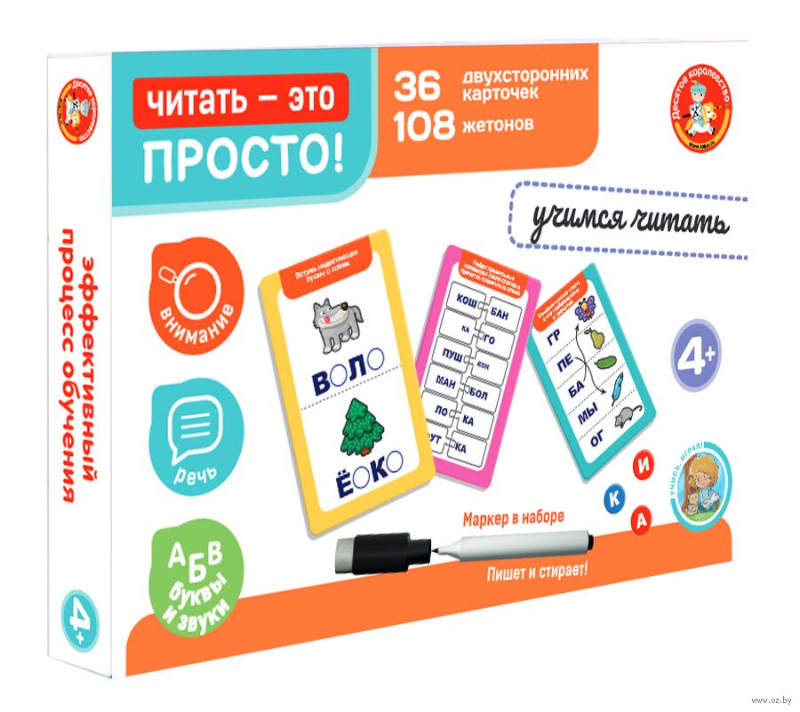 Развивающая игра для детей "Читать – это просто! Учимся читать" – это набор карточек с заданиями для тренировки навыков чтения.