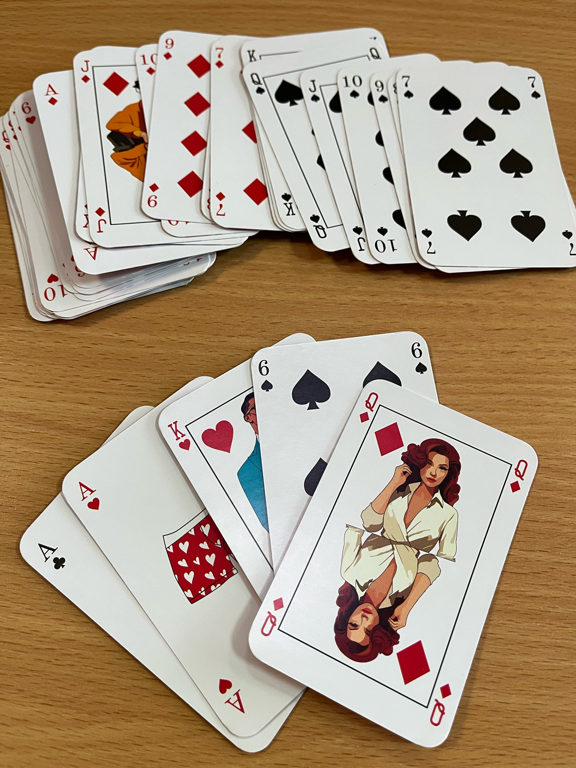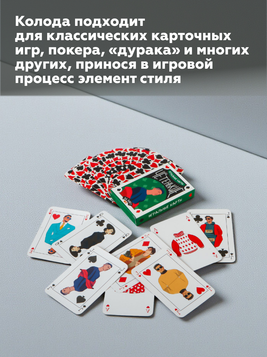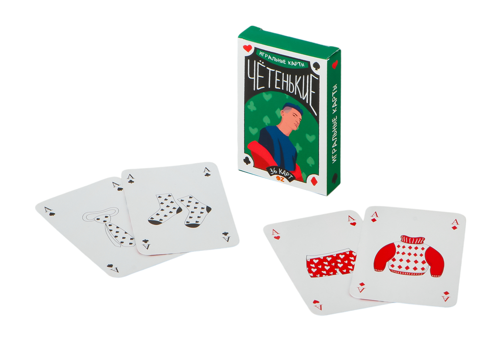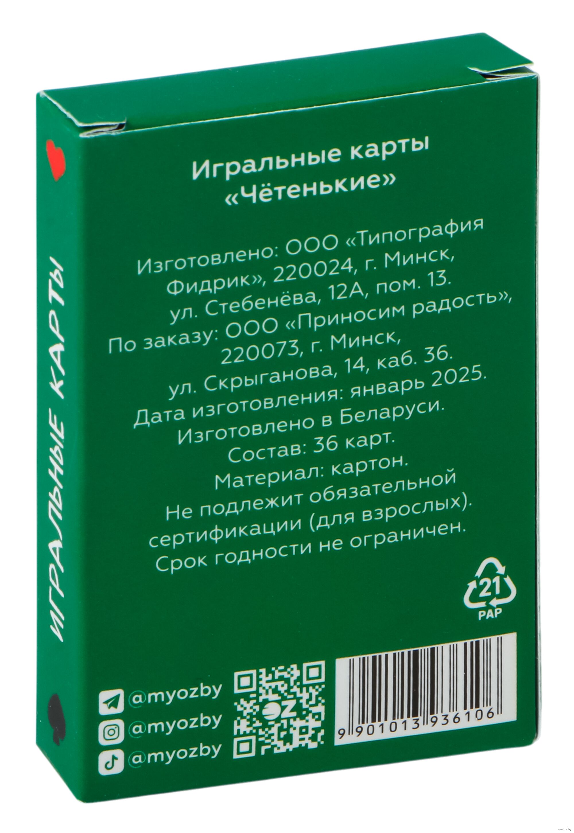 Погрузитесь в мир элегантной эстетики и современного стиля с игральной колодой "Чётенькие"! Её эксклюзивный дизайн покорит сердца любителей карточных игр и моды.
