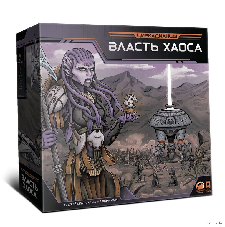 "Циркадианцы: власть хаоса" – конфликтная соревновательная настольная игра на контроль территорий с асимметричными фракциями. У каждой фракции уникальные лидеры и качества, которые вы будете улучшать в ходе игры, а также уникальные здания и личное условие победы.